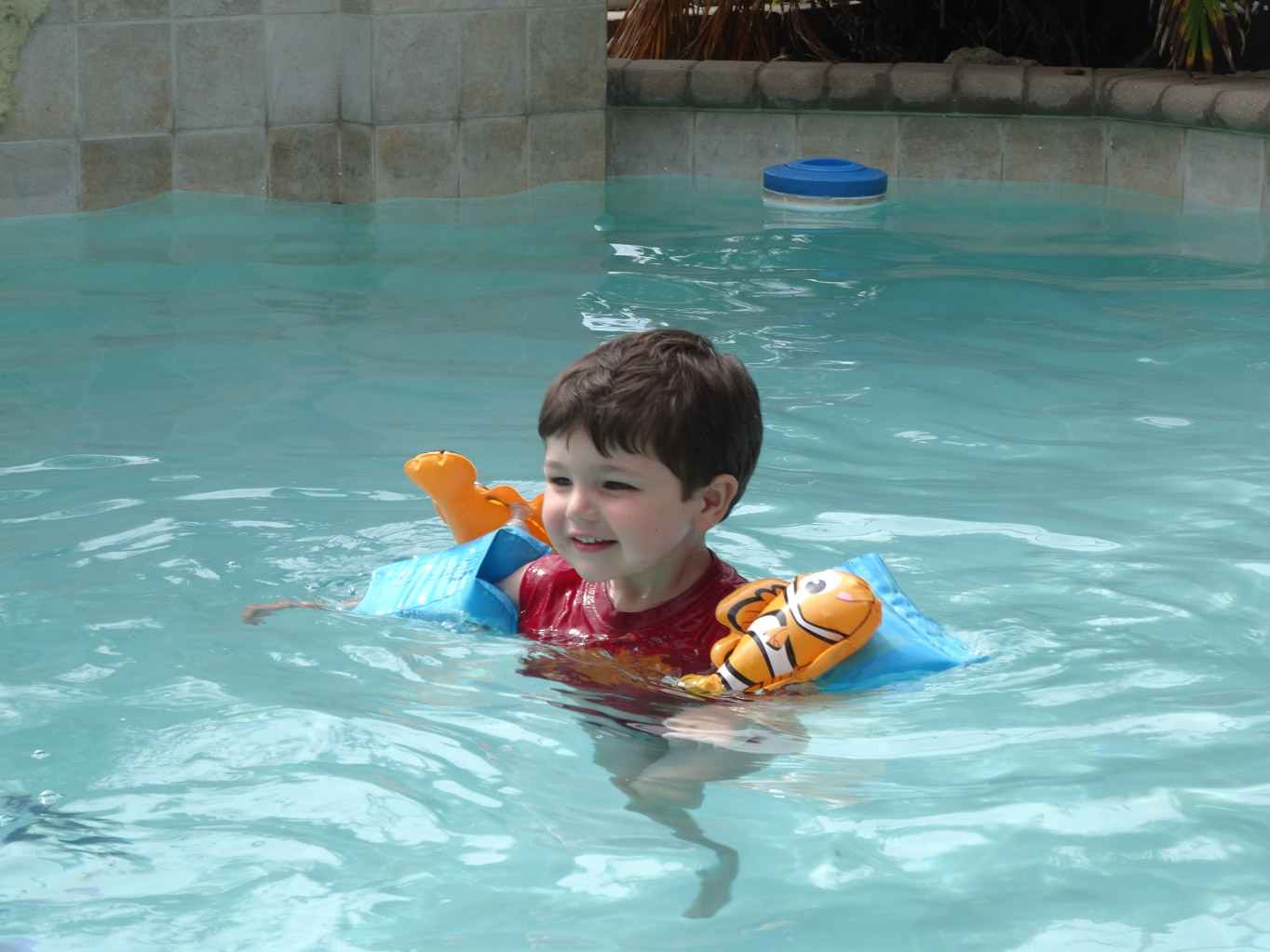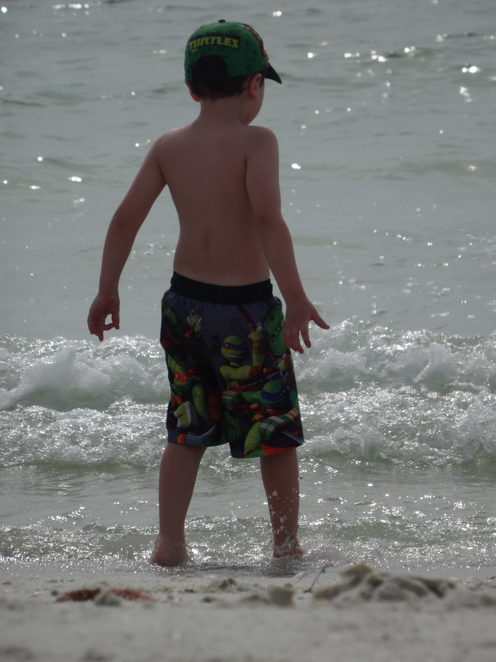 With today being our last full day, we decided that we should have one final beach day. But before heading to the beach, there was a huge accomplishment for Liam. He finally put on the water wings and was brave enough to start swimming on his own. Way to go Liam.