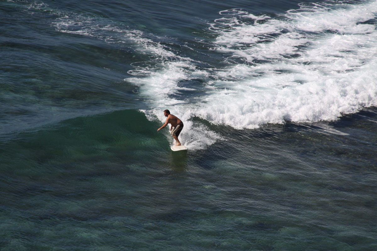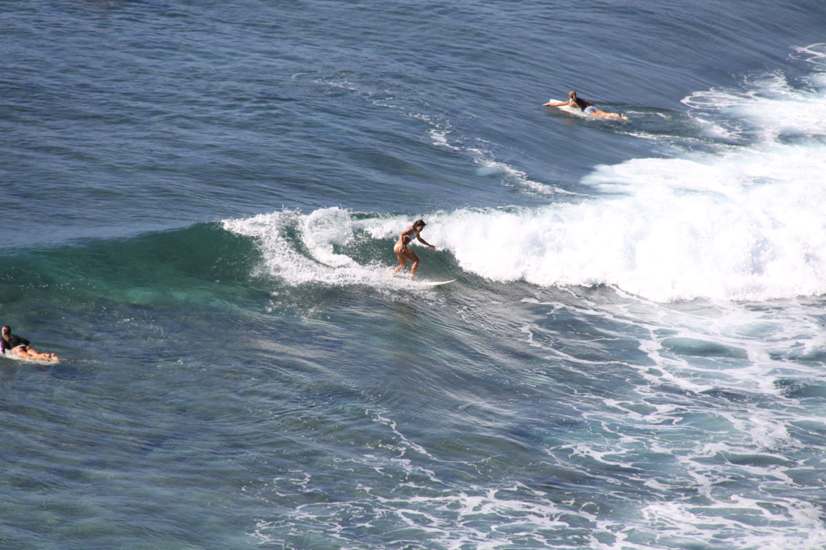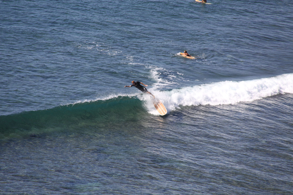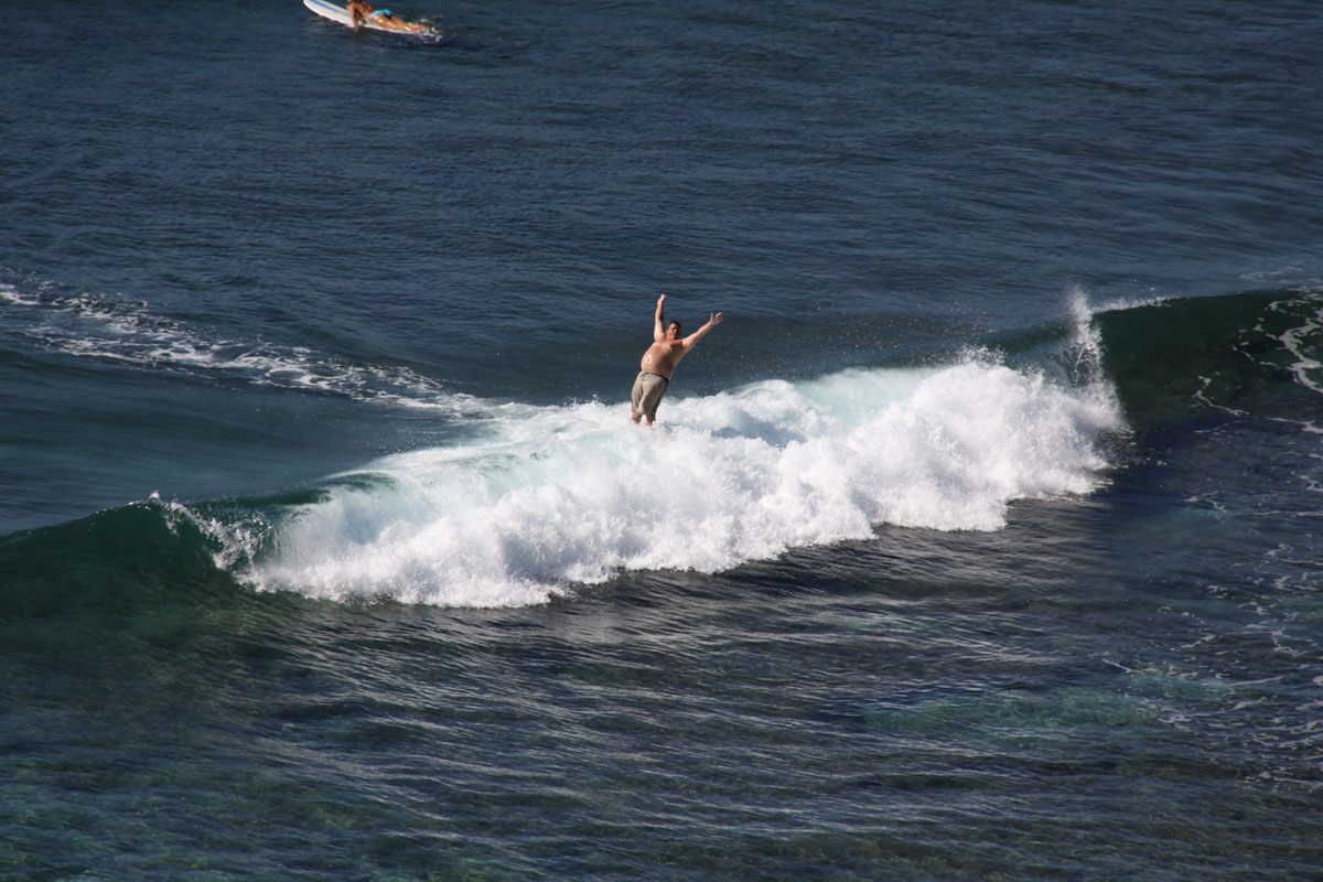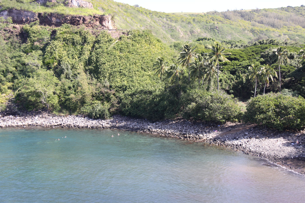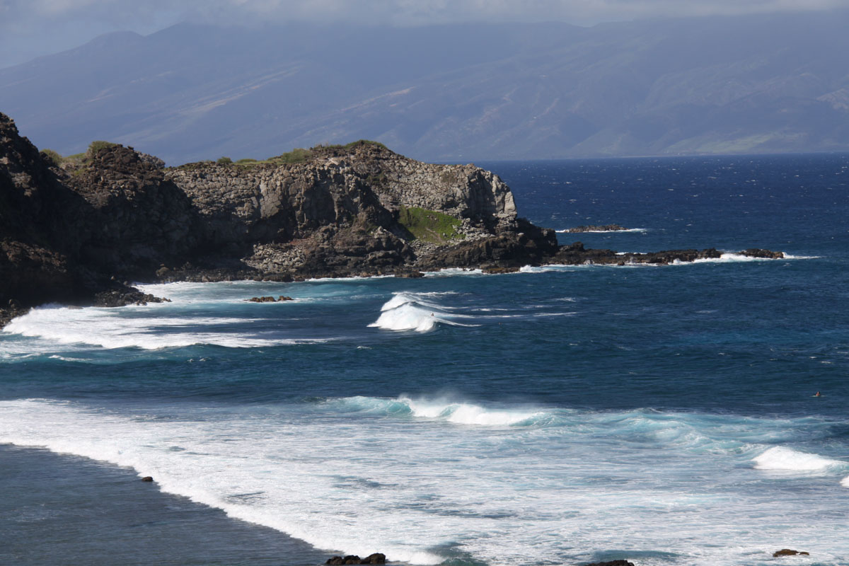 Once again we picked up lunch from the Honolua Store and then proceeded up the moutains. It was a much better view today than on Monday. We stopped at the Nakalele Blowhole and hiked down just a little bit but the blowhole wasn’t blowing as good as it did the other day. We headed back down the moutains and decided to have our lunch at Honolua Bay. This was the site of the Billabong Pro Maui women’s surfing competition which was the third and final event of the women’s Vans Triple Crown of Surfing series. There were quite a few surfers in the water and we also saw more whales.