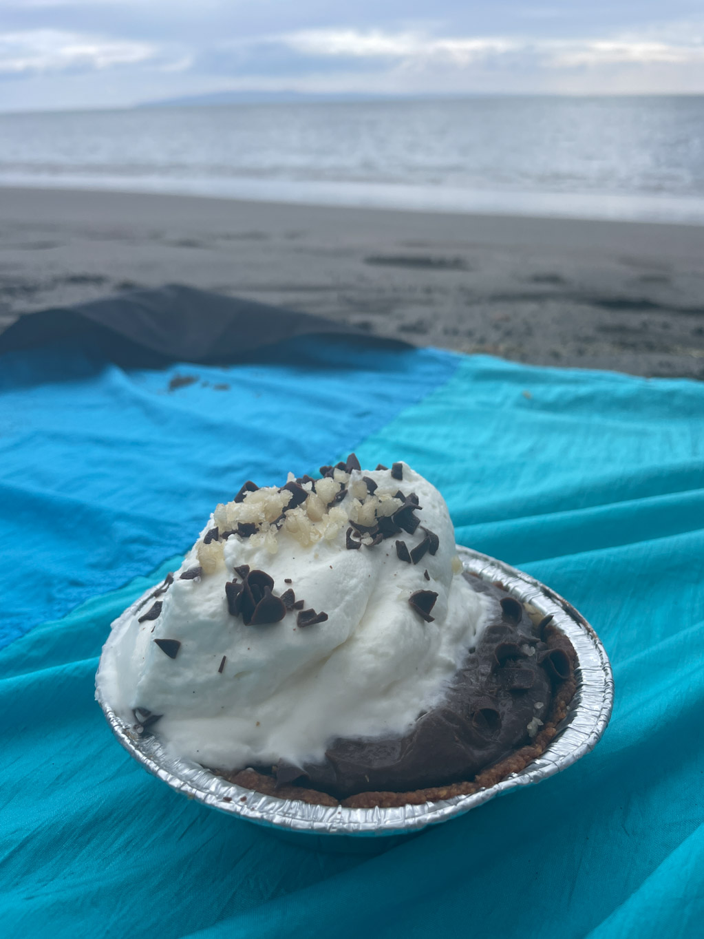 Afterward, it was only about a five-minute drive to find a nice beach. We got set up and enjoyed our lunch, with the highlight being the chocolate mac nut pies. When it started to sprinkle, that was our cue to pack up and head back—though not before stopping at a couple of ABC Stores for some very last-minute shopping.