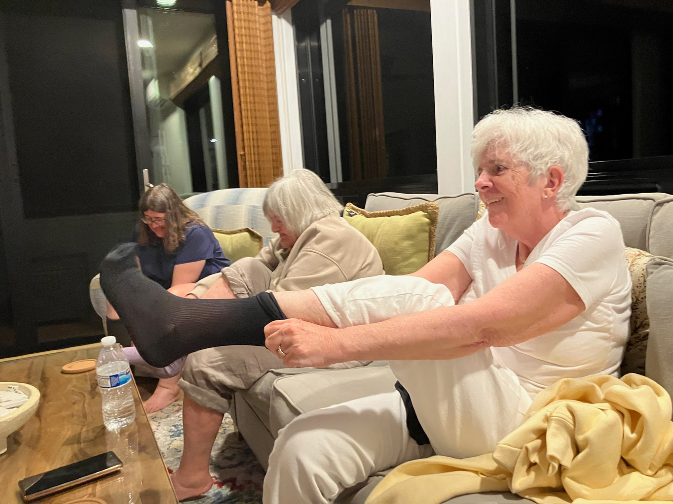 At Kahului Airport, Karen dropped us off before returning the rental car. At the Air Canada counter, I had to do quite a bit of explaining about why all of us should have free checked luggage. I think our sob story—along with Darlene’s “bribes”—helped. Eventually, we got our boarding passes and headed to security. Joan and Darlene ended up in one line, while Nana and I were sent to another—no idea why. By about 9:40 p.m., all four of us were settled at Gate 19.