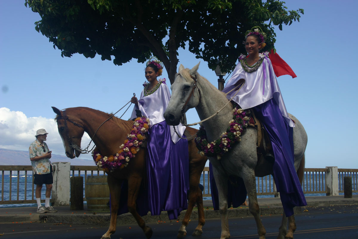 We started the morning back in Lahaina to watch the Na Kamehameha Pa’u Parade.  The parade features pa’u princesses on horseback along the Royal Court of Maui.  Each of the islands were represented.  It was a very colourful and down home parade.