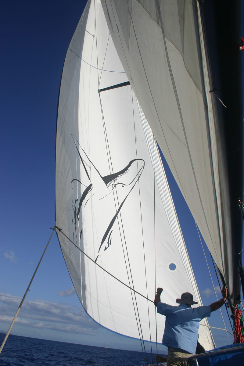 We sailed with Captain Gene and First Mate Don on the Scotch Mist II.  When the sail was unveiled, I noticed that it was a picture of a whale done by Wyland.  Karen is a huge Wyland fan.  Captain Gene told us that he is very good friends with Wyland and that he sails with him alot in the winter.  How cool was that.