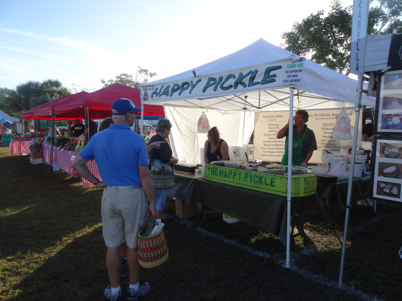 From November to April, the Veterans Community Park hosts the Marco Island Farmers Market on Wednesdays. When we were here back in April, we visited the market and got lots of fresh fruit and vegetables. But our most favourite was the garlic dill pickles from The Happy Pickle. Karen, Cathy, Liam and I decided to go while we left Dave and Michael behind sleeping. Because we got there just after they opened, it was not crowded and were able to quickly pick up what we needed and wanted. The other nice thing about getting there early, is that it is not hot like it is later in the day. We picked up some locally grown strawberries, navel oranges and of course pickles.