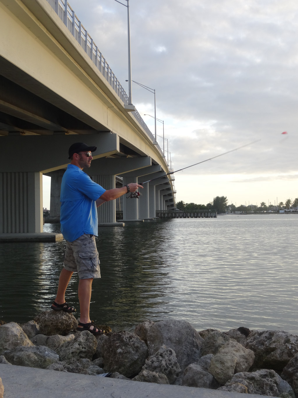 We thought we should continue the fishing by heading over to the Judge S.S. Jolly Bridge. The bridge connects Marco Island with the mainland of Naples. It was getting close to dark so we did not have as much time as we would have liked. Dave did not catch anything but we did see a beautiful sunset.