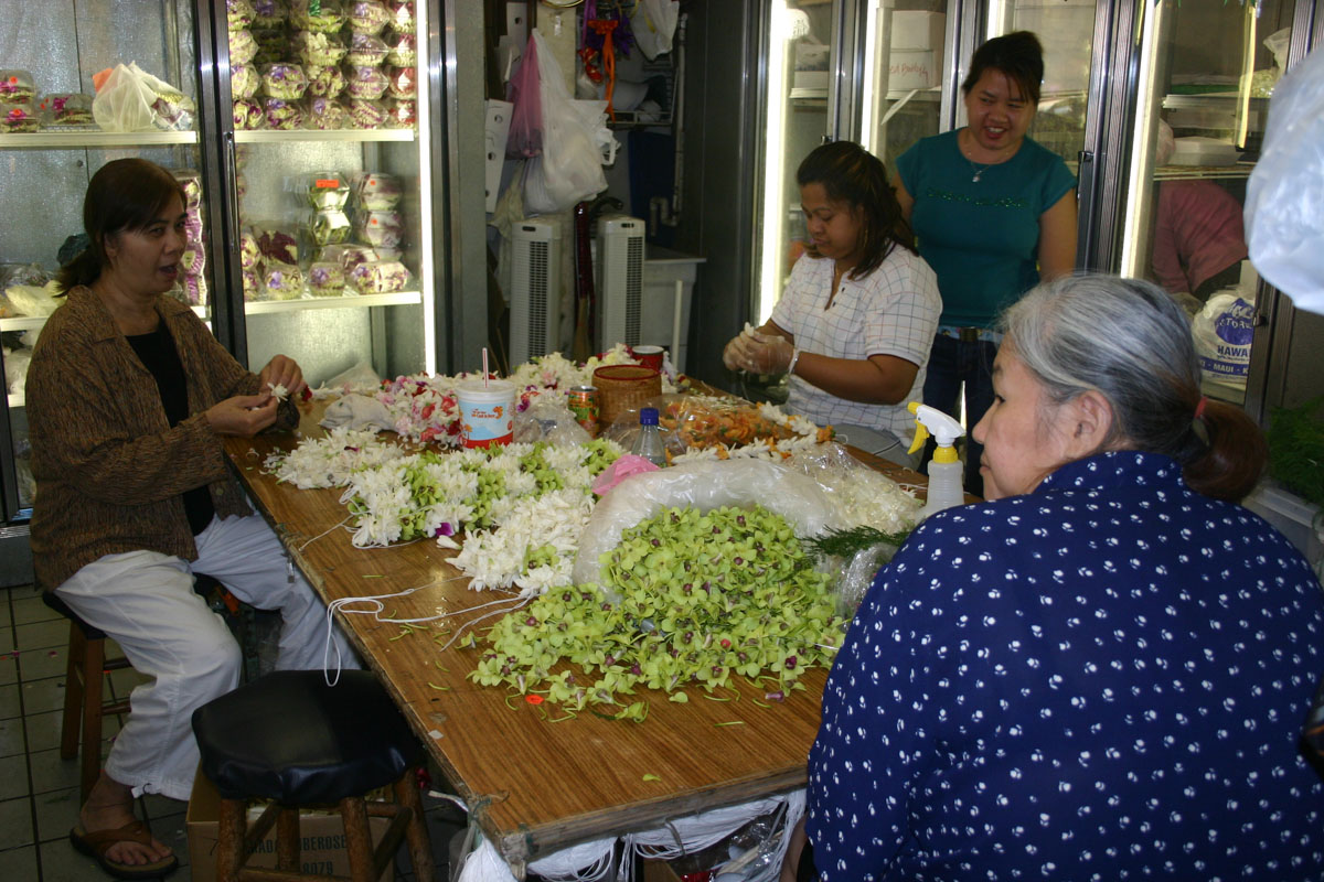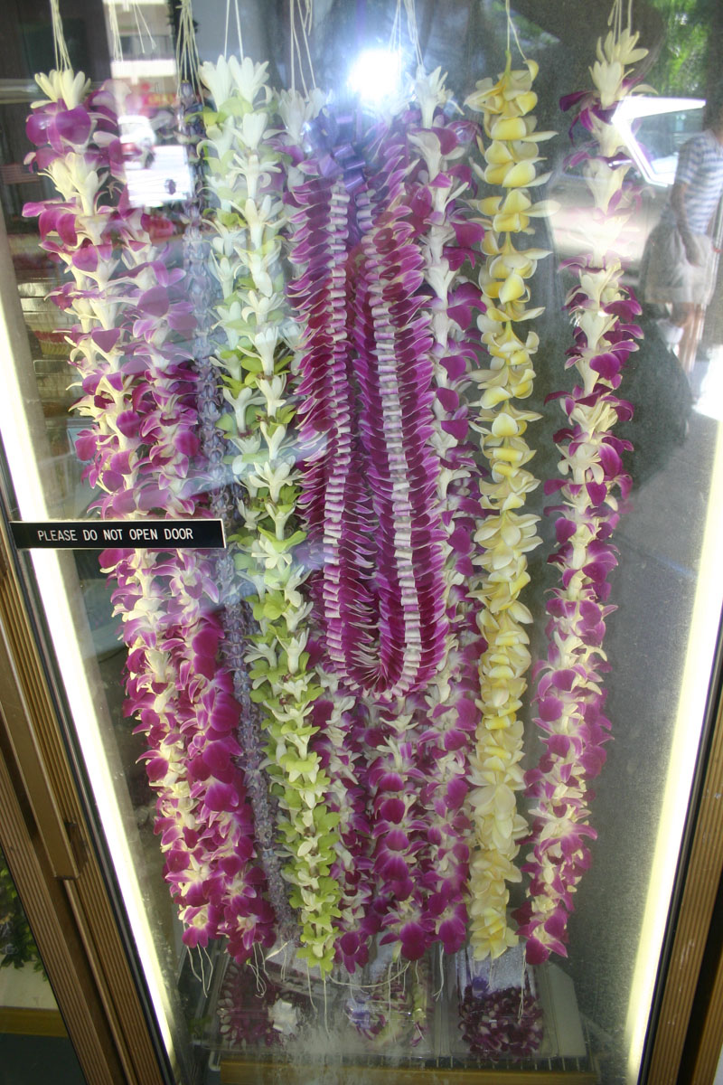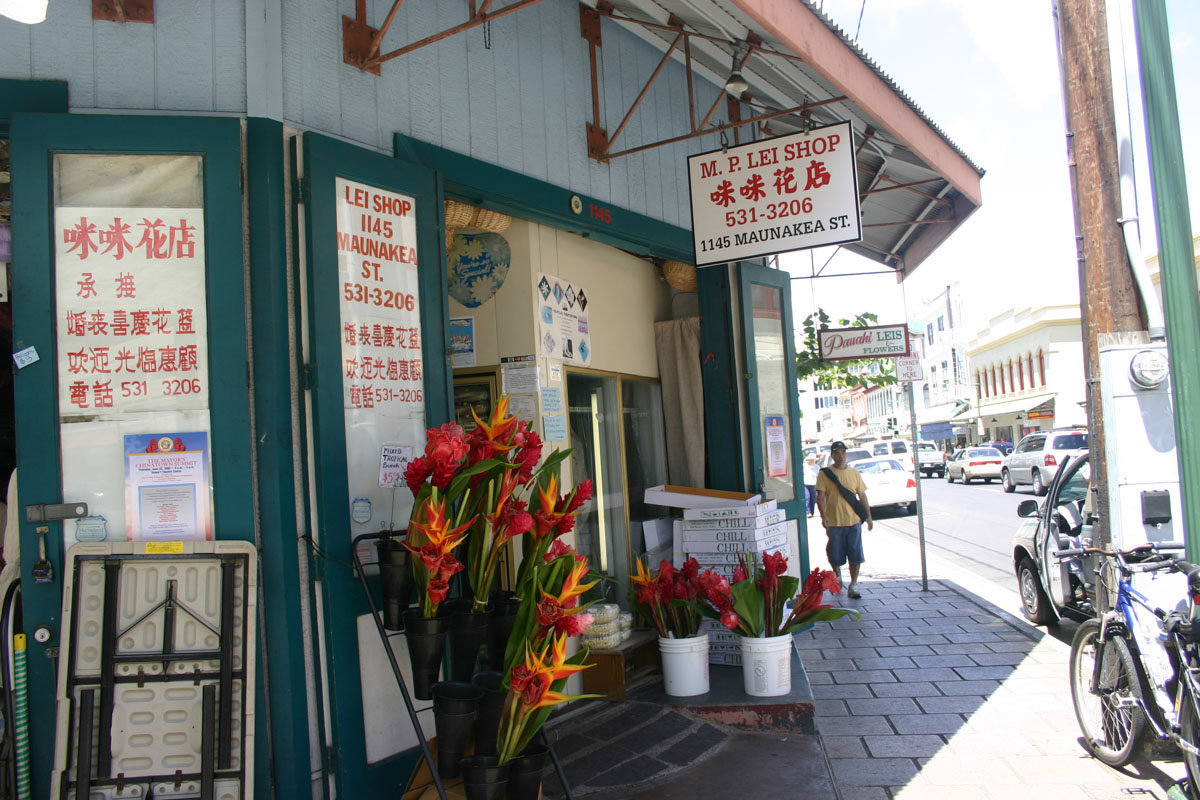 We did some research and decided that we wanted to explore Honolulu’s Chinatown. What an interesting place. We walked around and experienced the sites and smells. Besides the many shops selling trinkets, there are many flower/lei shops. The ladies sitting around tables filled with flowers creating beautiful leis.