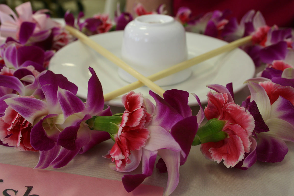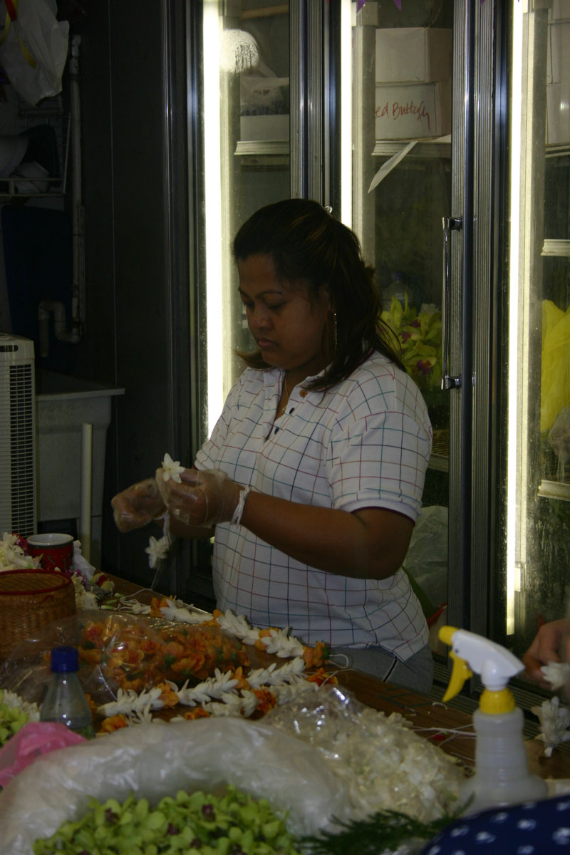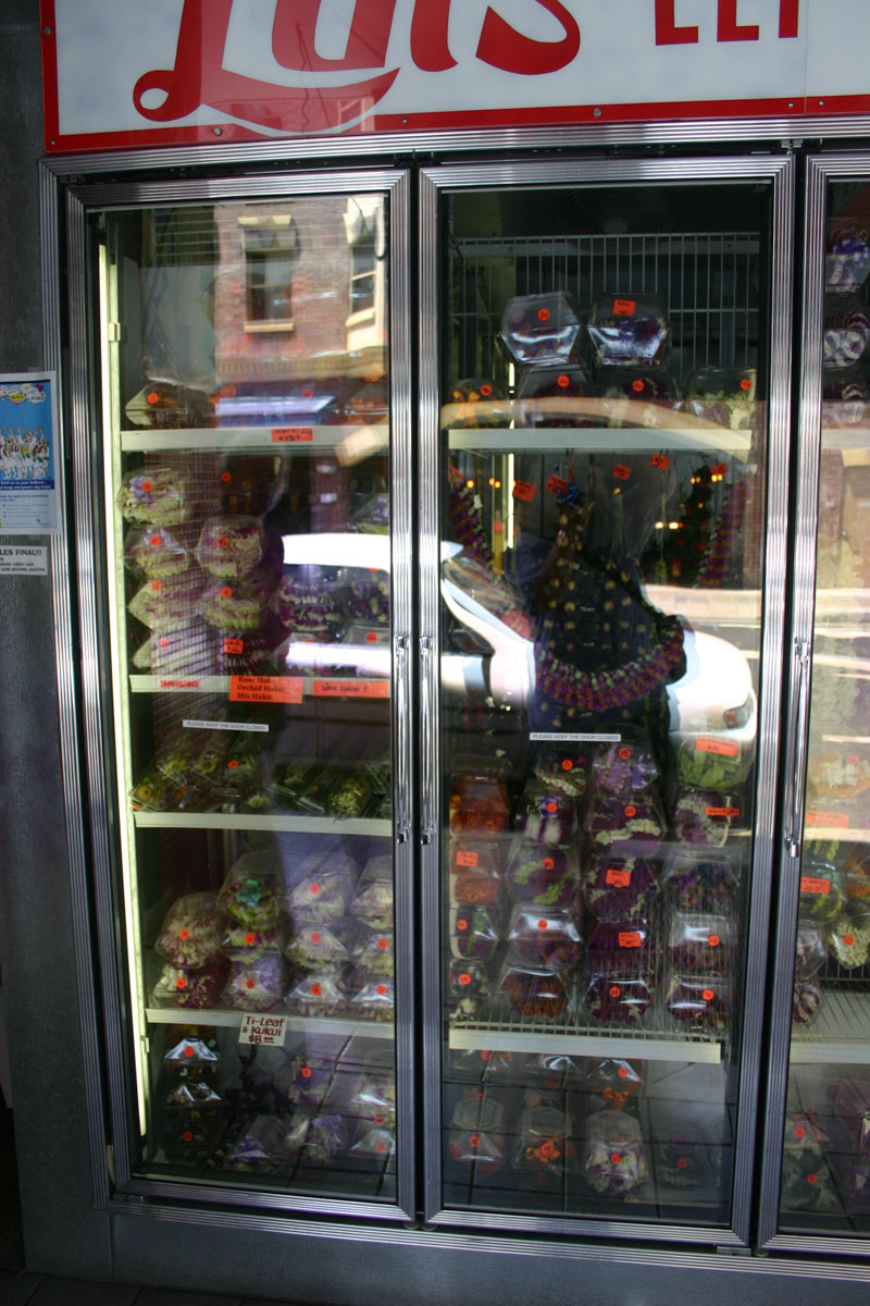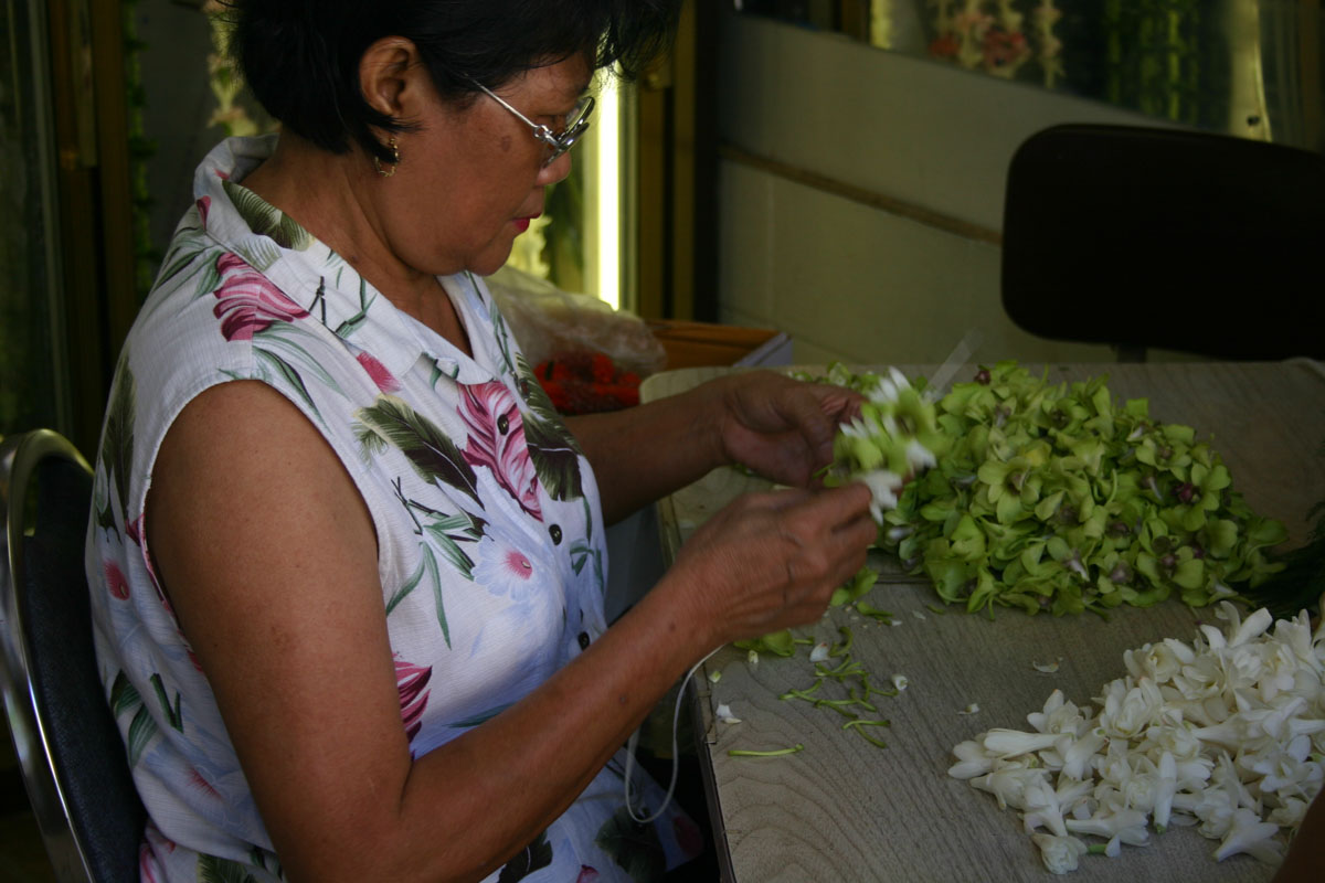 We did some research and decided that we wanted to explore Honolulu’s Chinatown. What an interesting place. We walked around and experienced the sites and smells. Besides the many shops selling trinkets, there are many flower/lei shops. The ladies sitting around tables filled with flowers creating beautiful leis.