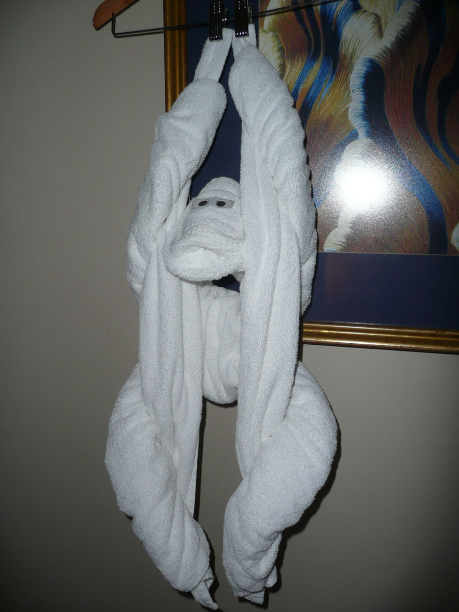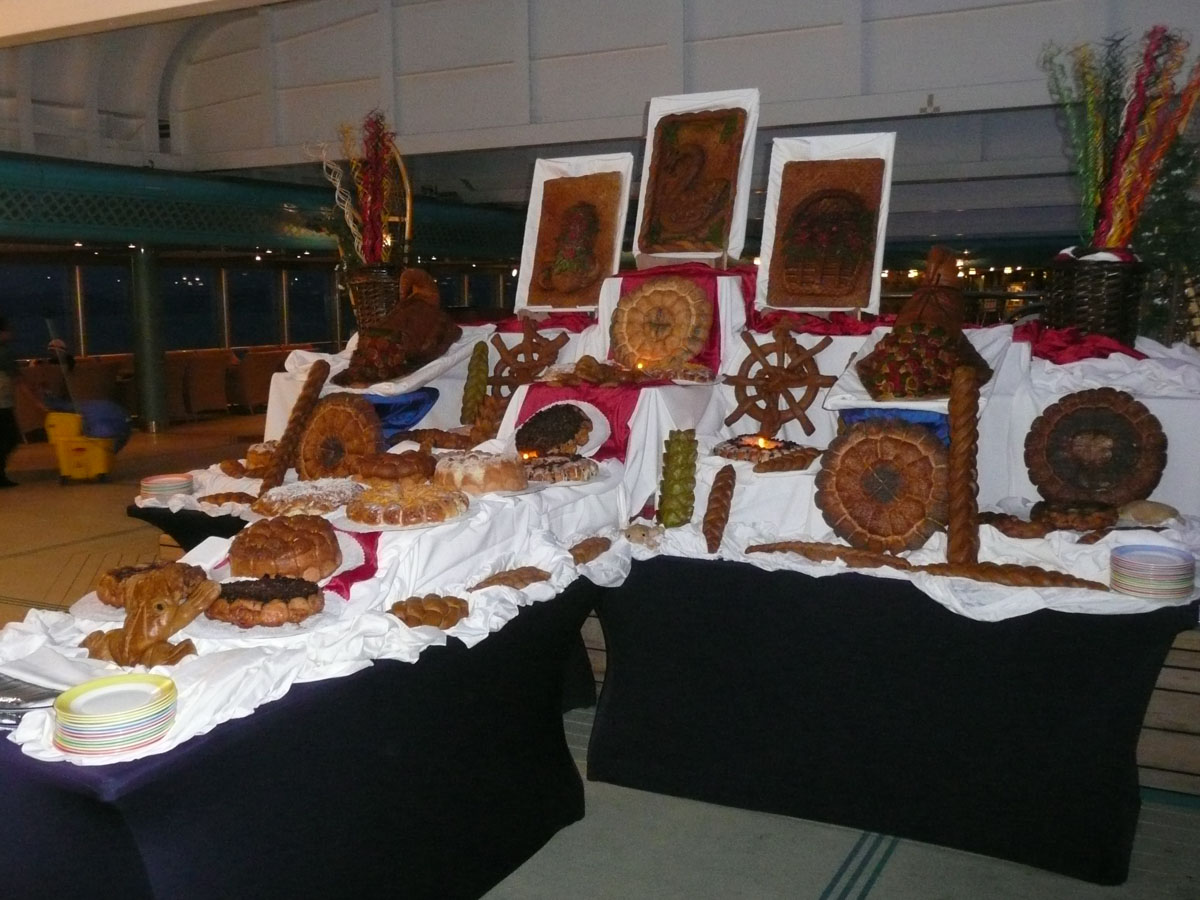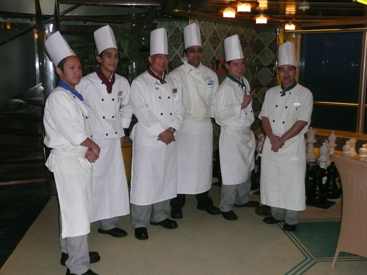 We had dinner in the Vista dining room.  Unfortunately I didn’t get a picture of the menu.  But from what I can remember Nana had the ceasar salad and orange-spice pork, Papa had the Italian wedding soup and grilled chicken, Karen had the beef and chicken satay, chilled strawberry soup and roast turkey and I had the beef and chickey satay, garden salad and roast turkey as well.