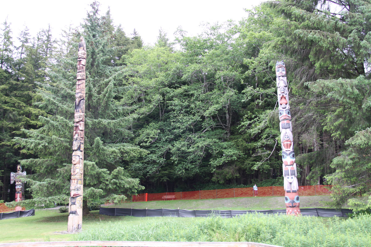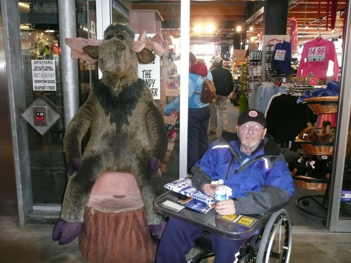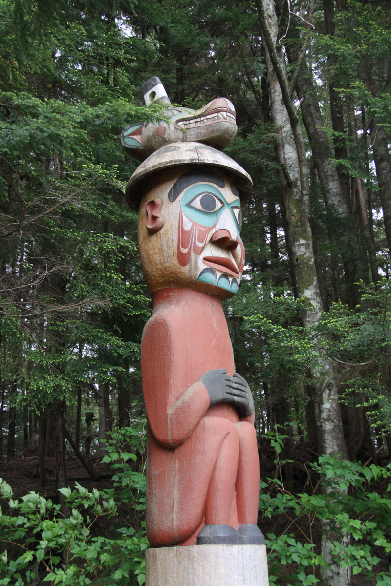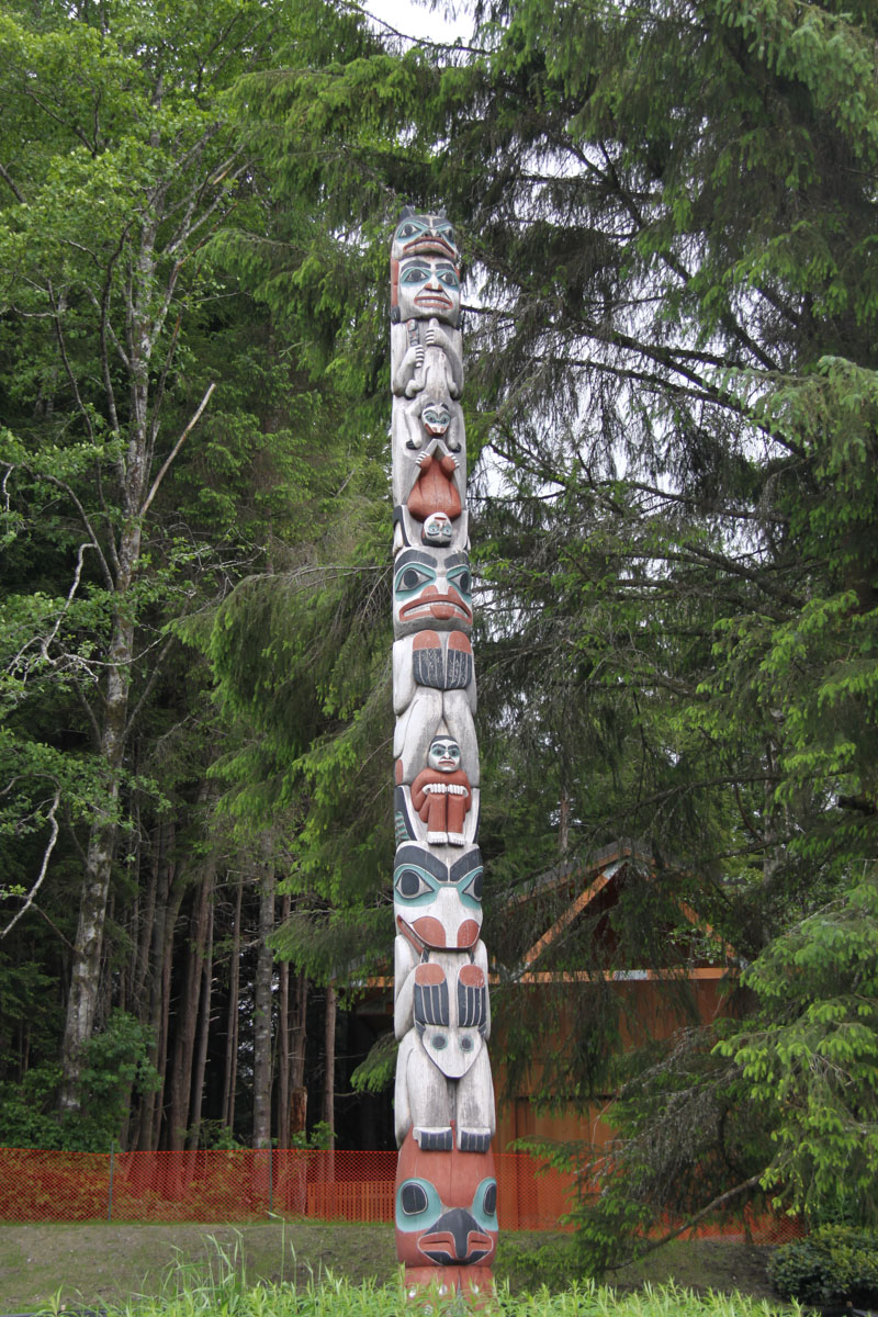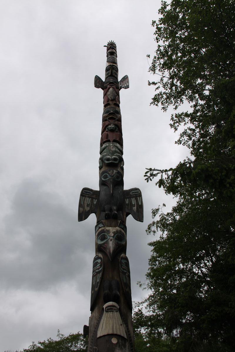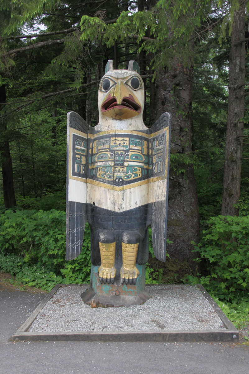 There is only one road into and out of town so we decided to head north, for 18 miles.  We stopped to see the totem poles at Totem Bight State Historical Park.  Lucky for us there was a path that we could push Papa on.  We learned that each carving on the totem has a meaning.  We went as far as the road could go and then headed south back into town.