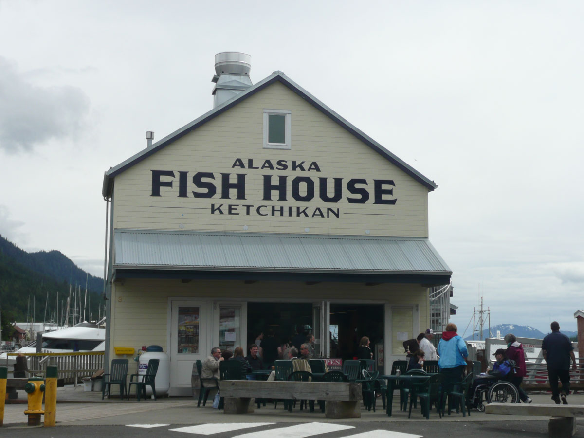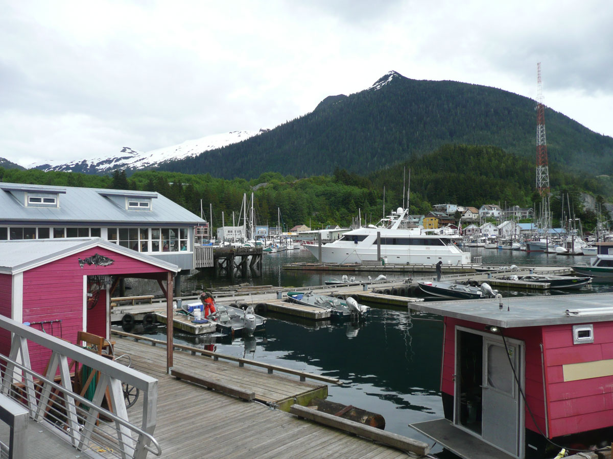 We had lunch at Alaska Fish House Restaurant right on the dock.  Everyone had the alaskan halibut and chips except for  Nana who had one pound of dungeness crab.  She says that this is the best crab she’s ever had.  We spent a bit of time walking around the shops before taking the only road south out of town, for 12 miles.  We were all sad that we didn’t see any bears but we did see large jumping fish.
