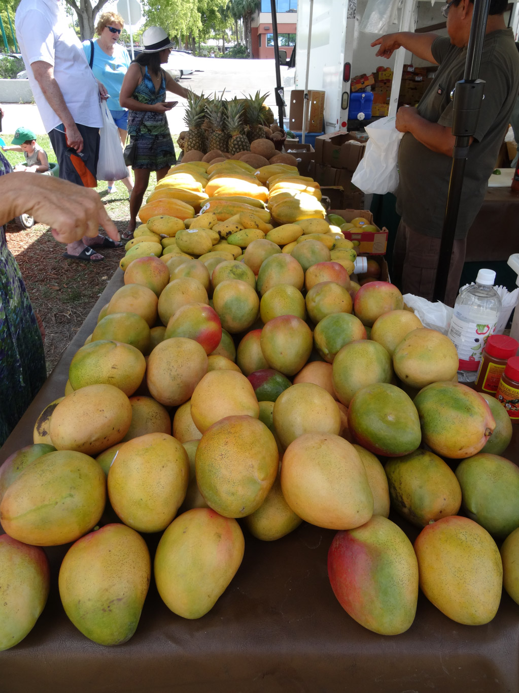 Marco Island has a farmer’s market on Wednesdays from mid November to the end of April so we decided that we should check it out. We were lucky to find a couple of parking spots close by which came in handy since we bought some fresh cut up fruit from the very first vendor. The market is not that big, maybe fifty vendors in total but the variety was great. It reminded me alot of the Swap Meet in Maui but smaller. The kinds of things that people were selling were lots of fresh fruits and vegetables, crafts, flowers and food. We didn’t stay too long since it was getting pretty hot. Even the locals were complaining about the heat. But we did manage to get a little bit of everything. Before heading home, we had some fresh squeezed lemonade which we enjoyed with our beignets. On our way back to the house, Karen and I picked up delicious pizza fro Joey’s Pizza & Pasta House.