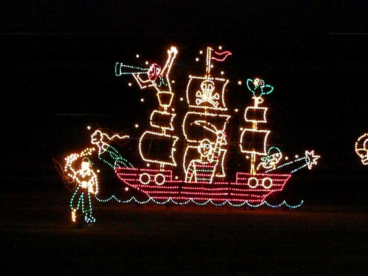 We went back to the hotel to pick up Papa and we decided to go and have dinner at the Cracker Barrel. Nana enjoyed the fact that while you are waiting for your dinner, you can go and do some shopping. After dinner, we went to see more Christmas lights. The Holiday Fantasy of Lights At Tradewinds Park is three miles of giant animated displays. This display has been going on for eighteen years and they expect to have over 150,000 visitors.