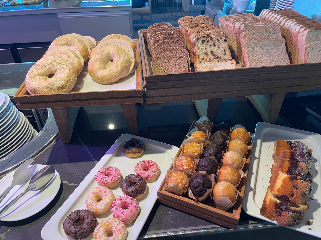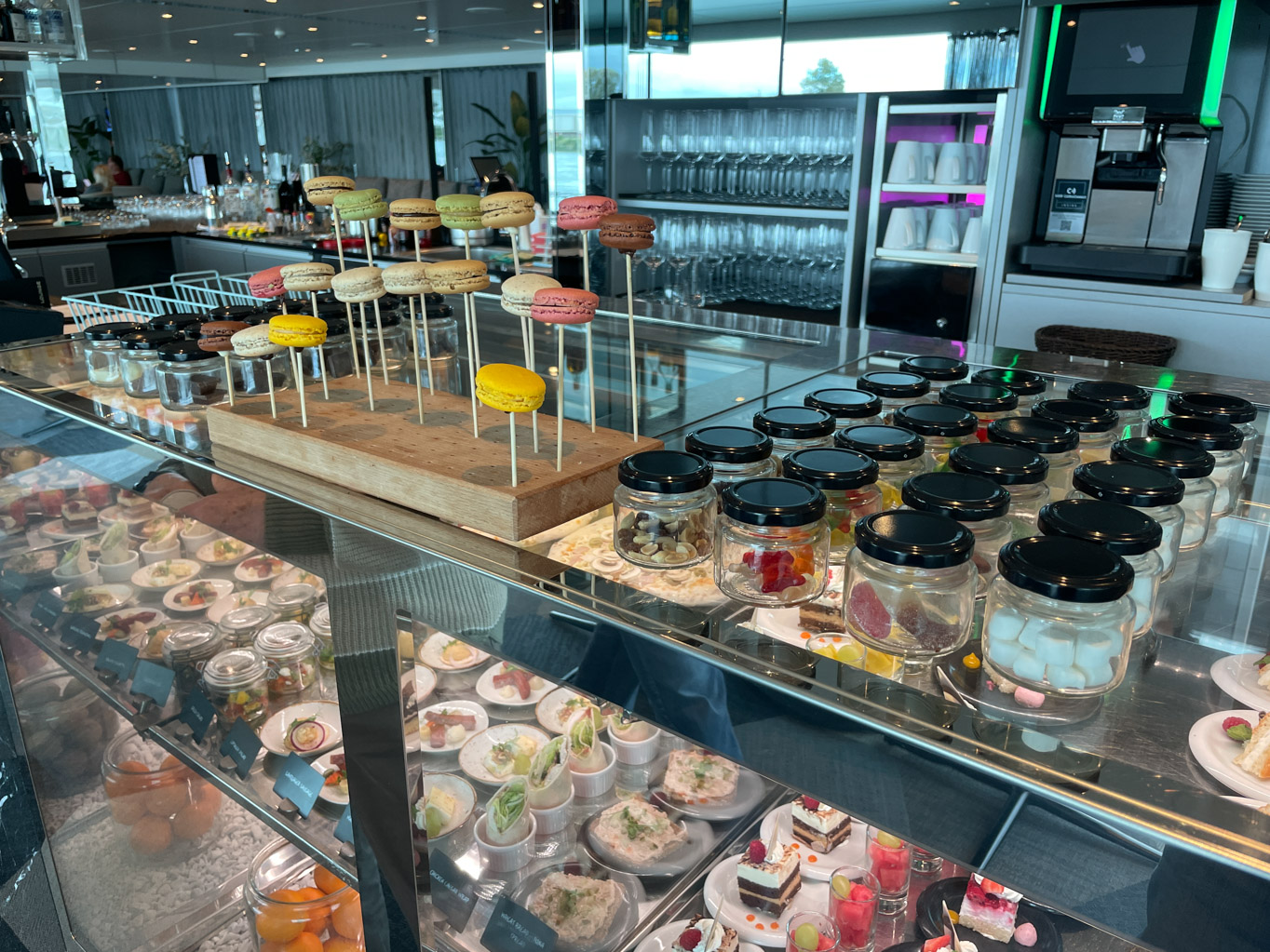Lunch is served just like breakfast, buffet style with lots of options. We made sure to try a little bit of everything from pasta to salad to soup to dessert. Once we were done, we headed up to the Lounge where they offer a Cafe Lunch. The selection is different than what is served in the Crystal Dining Room. They offer a few salads, sandwiches, wraps and pizza. But the best part is the snack options. They have these cute little jars with everything from chocolates to candies to trail mix. We made sure to grab a couple of them.