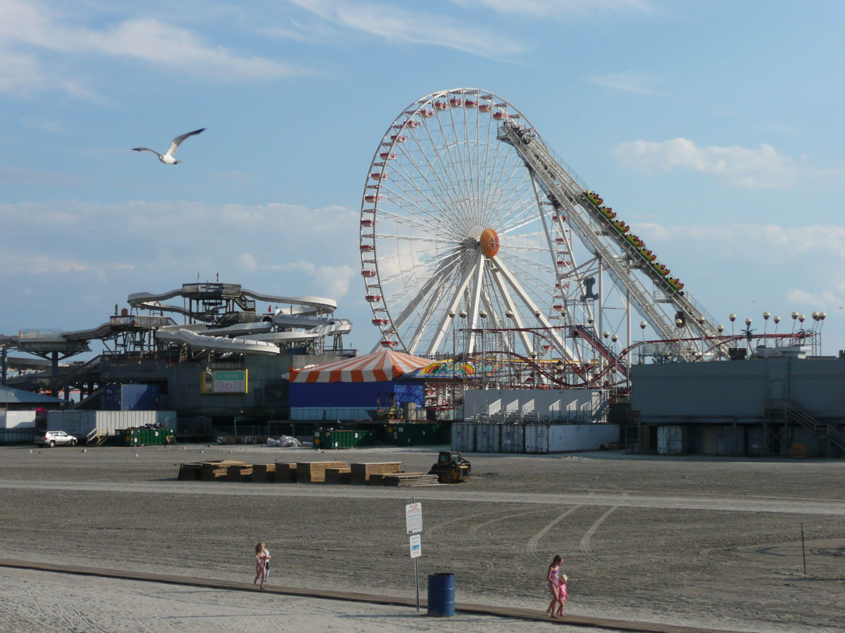 We needed dinner so we went to the boardwalk in Wildwood and had a slice of pie (aka pizza) from Sam’s Pizza Palace.  The boardwalk reminds me of the CNE.  Wildwood is the busiest area on the Jersey Shores, with plenty to do, and lots of people.  The hike to the beach from the boardwalk has to be at least a 1/2 mile over the sand.  I have never seen such a wide beach.