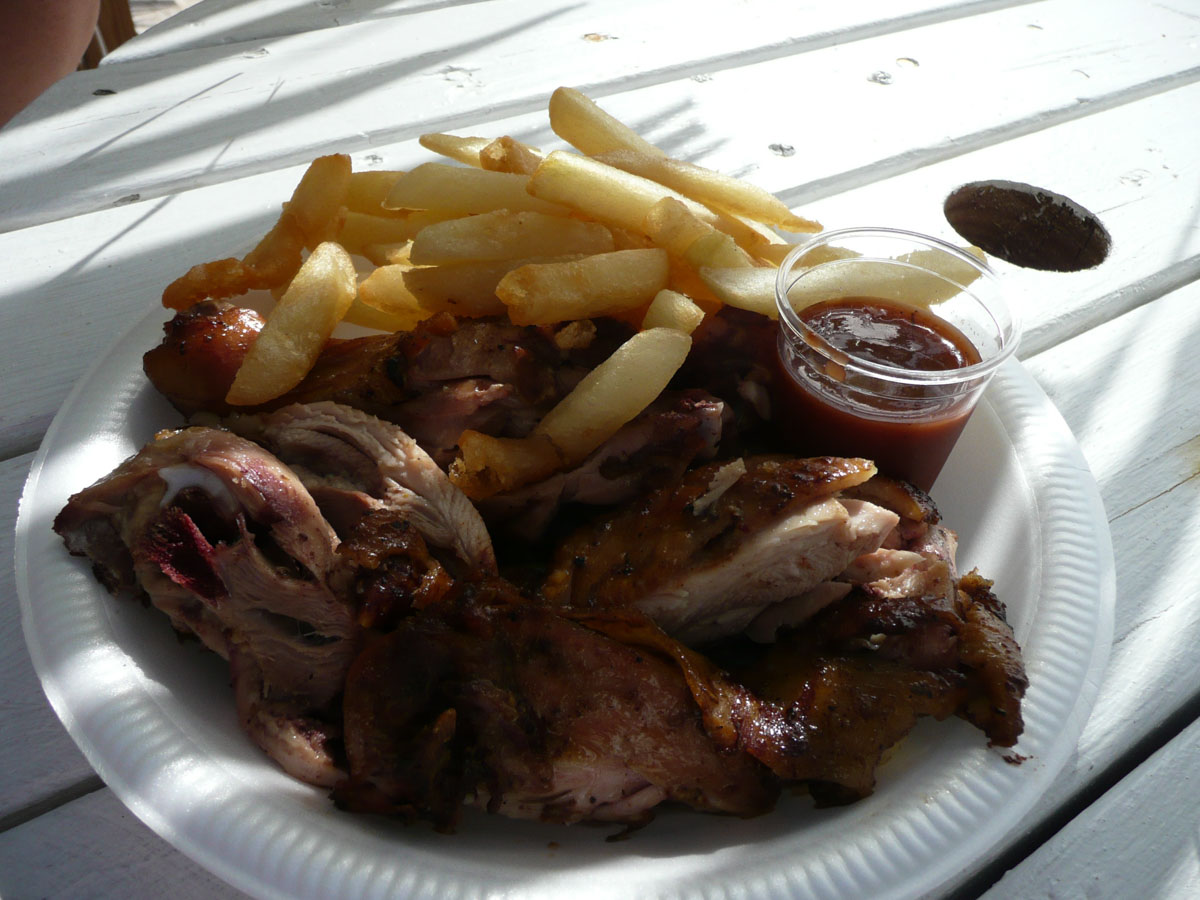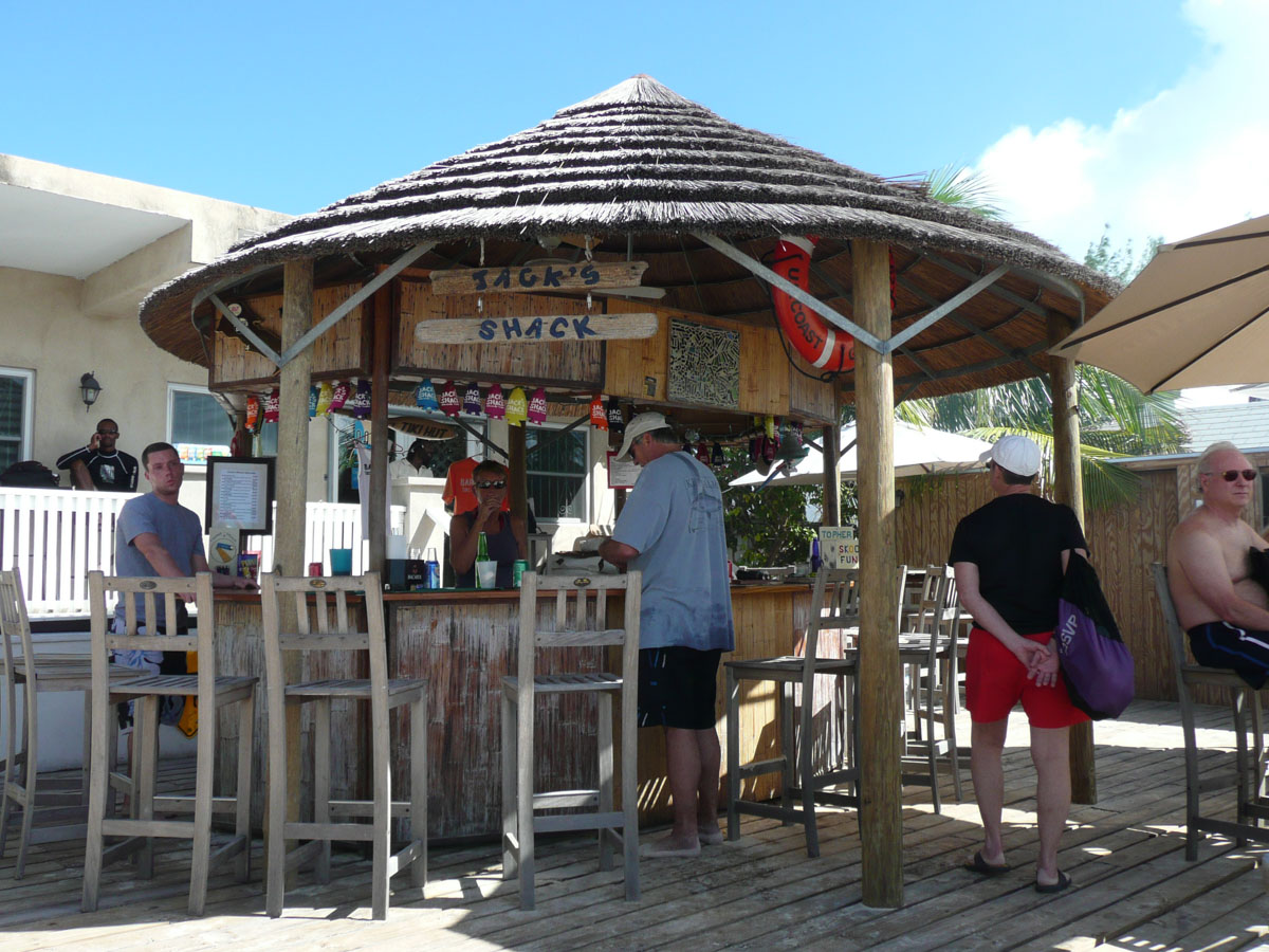 We had a little trouble getting the golf cart started but once we did, we headed to Cockburn Town which is the national capital.  We drove down Front Street and admired all of the beautiful buildings.  It was lunch time so we drove to Jack’s Shack which is right on the beach.  We had some great Jerk Chicken while enjoying the view.