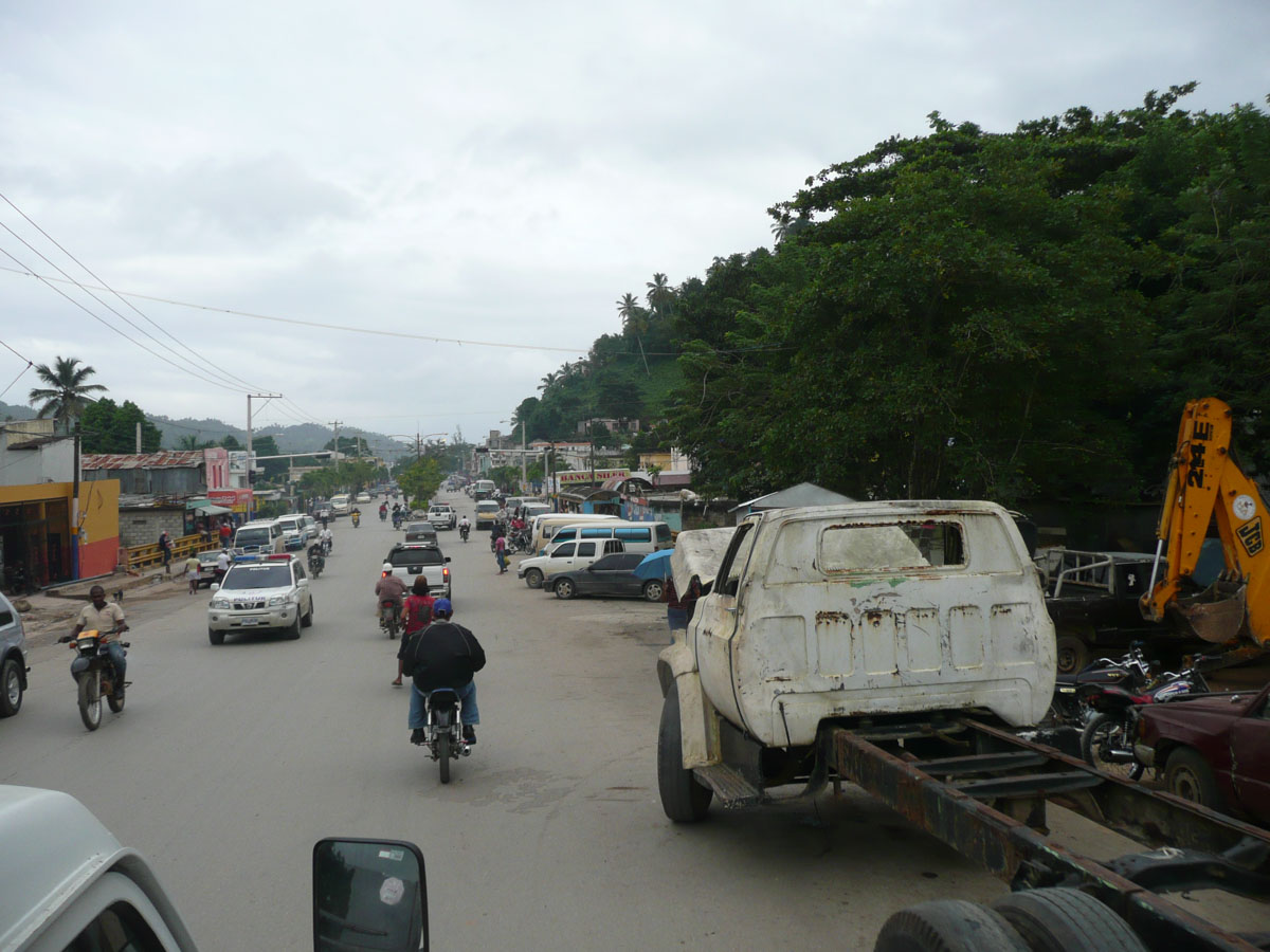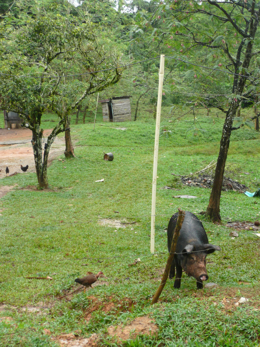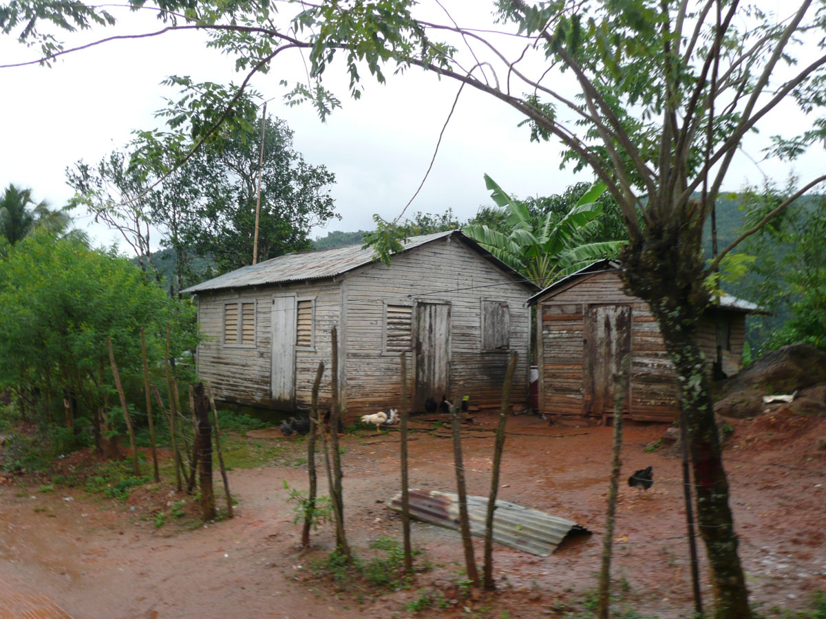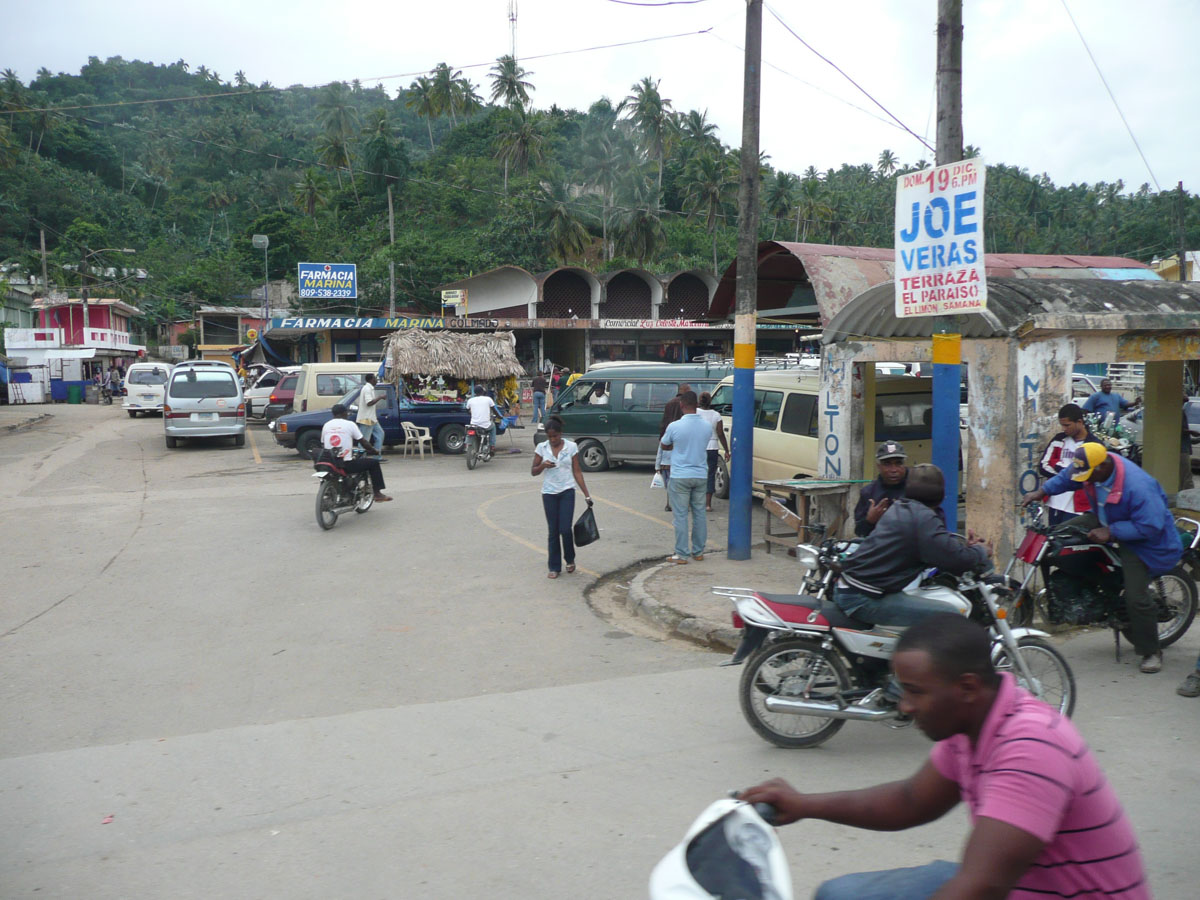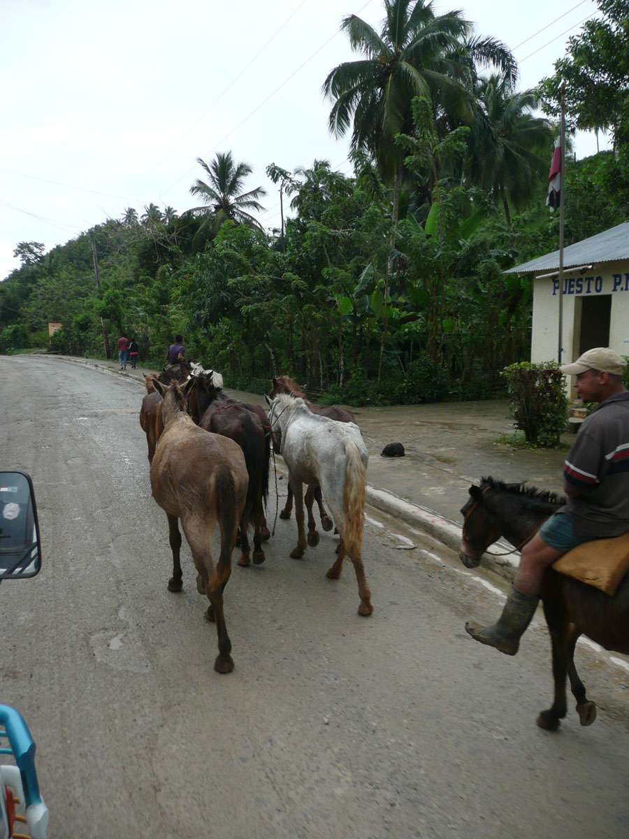 We left town and started to head to the beach. We had read on the internet that the tour takes a while because of the condition of the roads. We were surprised at the start of the tour because the road was paved. But once we got past the new water reservoir, the paved road just stopped. All of a sudden it was just a dirt road with lots of rocks. It was quite a bumpy ride. At one point we had to drive across a river, right through the water, because the bridge had washed away and was never replaced. The first thing I noticed is just how poor the country is. Outside of the town of Samana, the homes don’t have electricity or running water. Their tiny homes are made out of tin, and maybe some cinder blocks. Most homes had chickens and pigs just running around. Elijah explained that when you need food, you go to the market and get it fresh whether it is vegetables or meat. There are no grocery stores. He also said that families outside of town share with each other. For example, if a family makes a batch of jam, they share it with the other families nearby. There are very few cars, and everyone drives scooters. We saw one scooter with FIVE people on it! There are horses on the side of the road, waiting for their owner to come back from the mountains after gathering coconuts. We saw an 80 year old man on a horse, loaded down with coconuts.
