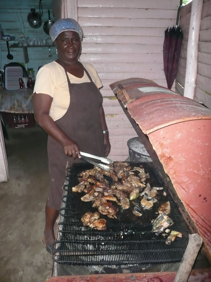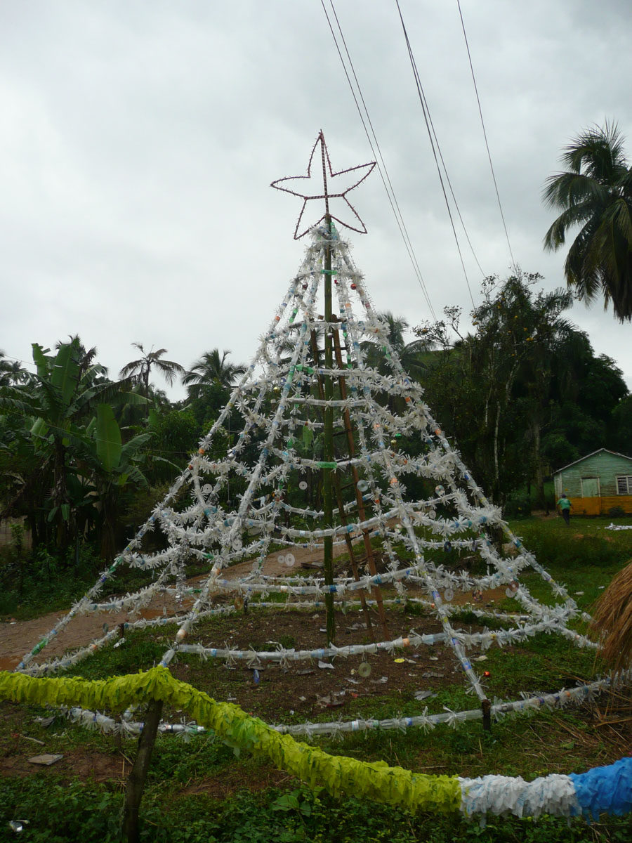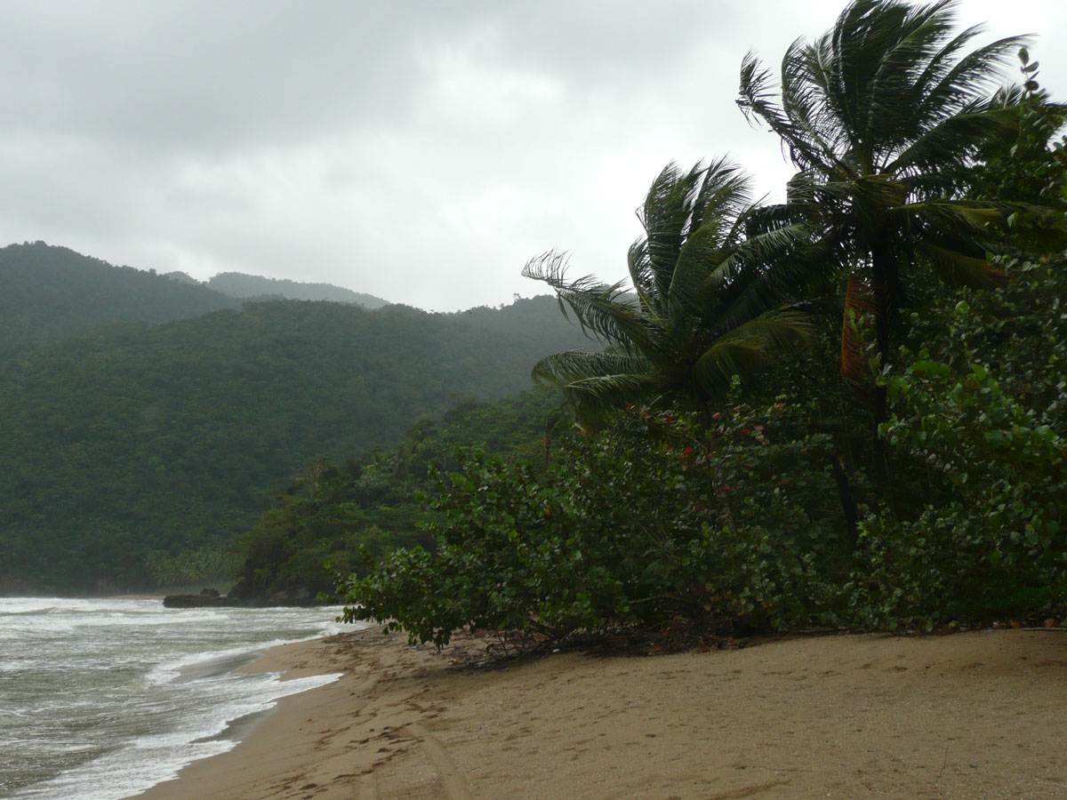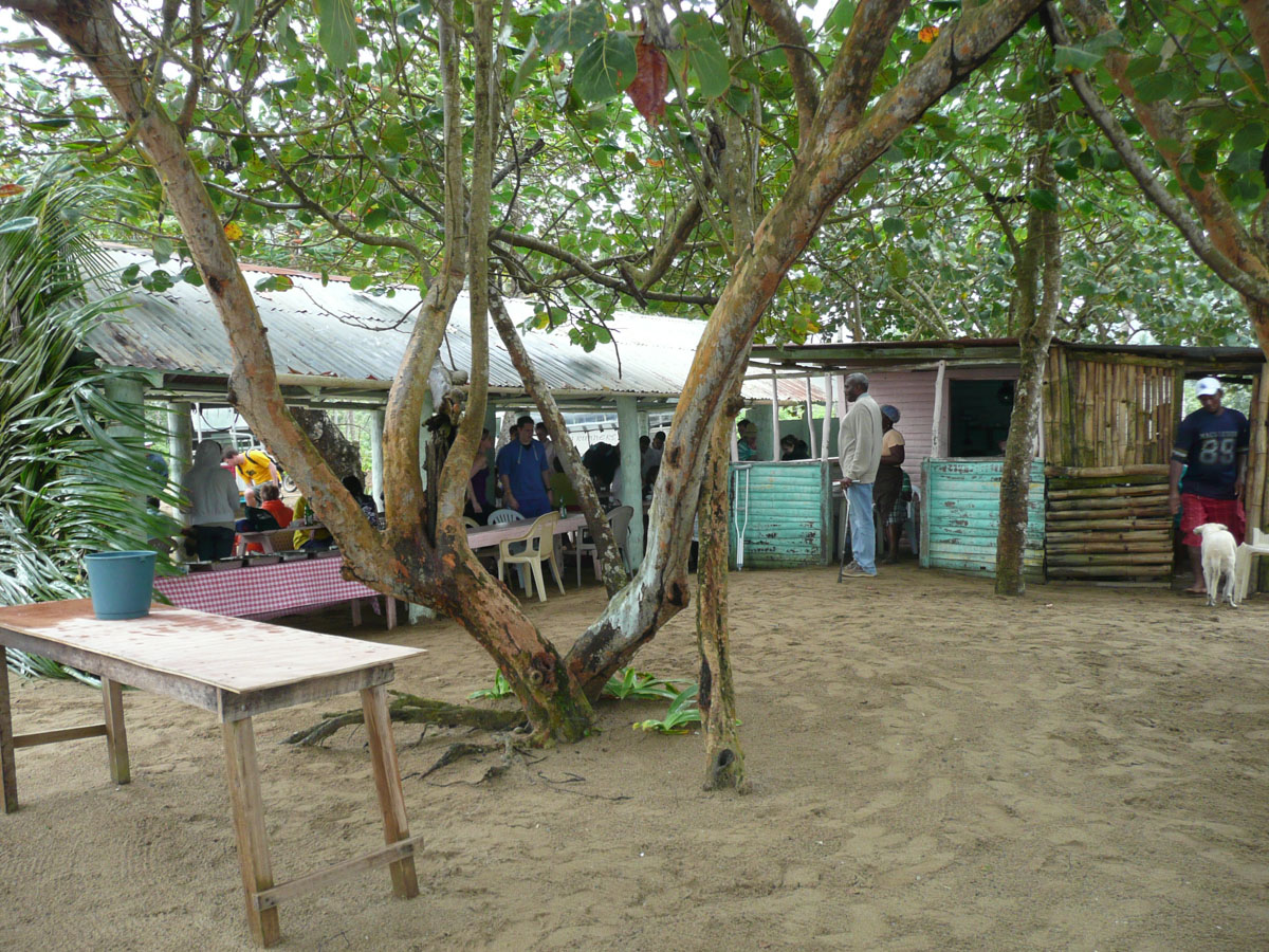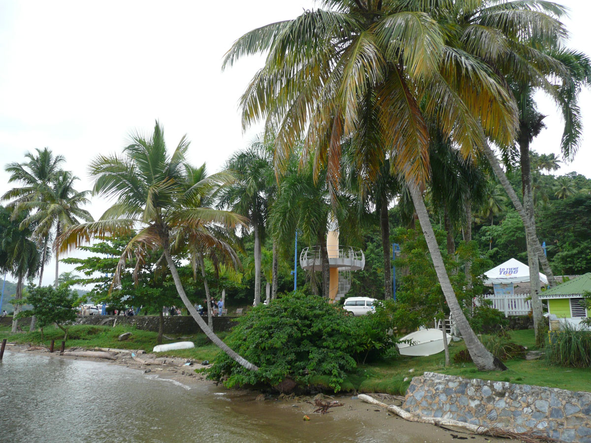After about a half an hour, we got to a beach. Unfortunately for us, it was not a nice day today (raining and cool) but it was still beautiful. The tour included a wonderful local lunch with chicken, fish, rice, cabbage salad, potatoes and fried plantain. Dessert was fresh pineapple and coconut. Best pineapple I have ever had, next to Hawaii. Lucky for us, one of the tour guides joined us for lunch. She was very friendly and told us many things about Samana and the Dominican Republic. Fishing, farming and tourism is how people earn a living.