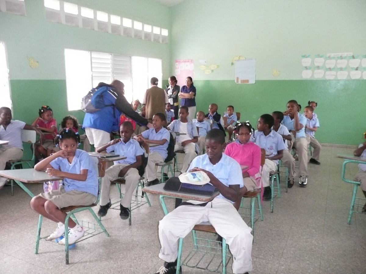 We finished up lunch and got back on the trucks to go to another part of the island. One of the things that we wanted to do was to drop off supplies at a local school. Terry mentioned that they desperately need school supplies so many of us on the tour brought stuff from home. Karen and I brought pencils, crayons, markers, construction paper and tons of stickers. We read on the internet that many of the kids make softballs out of tape. We brought them a basketball, football, volleyball, softballs, tennis balls and frisbee. The school we visited only had three classrooms and it was a public school. The teachers actually brought all of the kids together in one classroom so that we could visit with them. We found out that it’s only been in the last couple of years that it’s been mandated that kids attend school. The kids were absolutely adorable, and very thankful for all of the gifts.