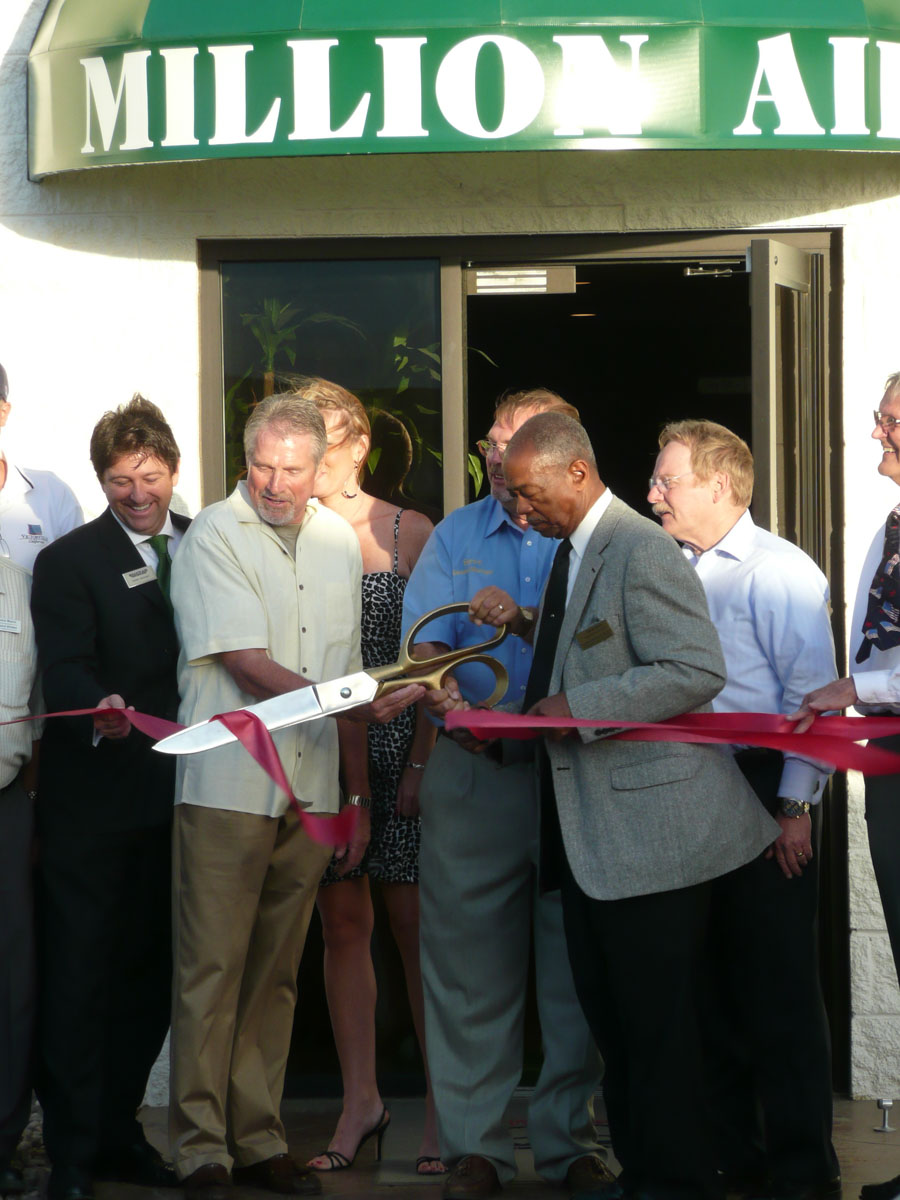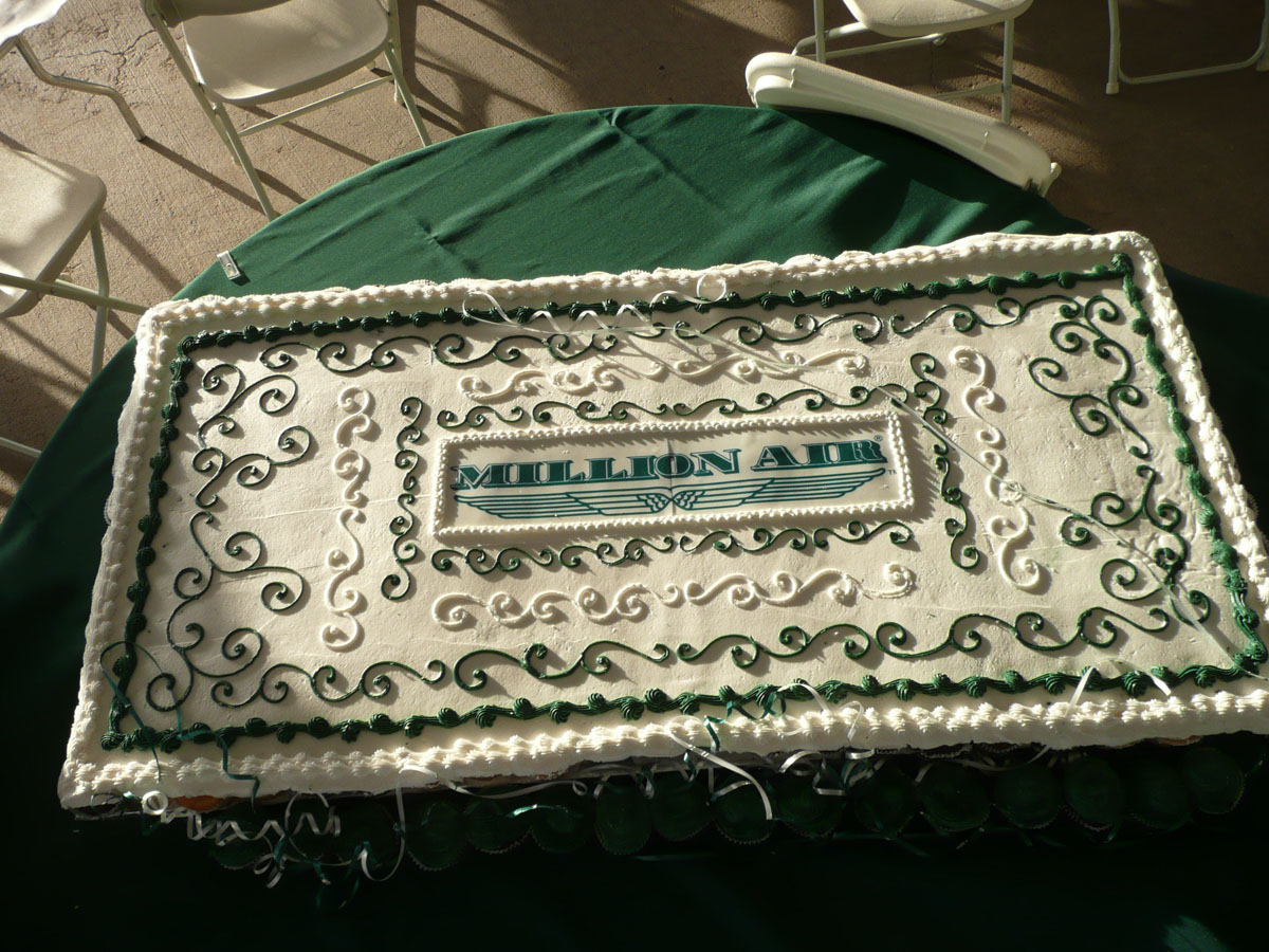 Darren was hired by Million Air to perform at the grand opening of their Victorville location.  Million Air is basically an upscale truck stop for airplanes.  (Movie stars and President Bush have flown in there!).  When we arrived, we drove onto the tarmac, escorted by an airport truck, and then drove down the runway to the tents where the show was being held.  The show was catered by Out of This World BBQ , and the food was fabulous.  Yummy chicken and ribs.