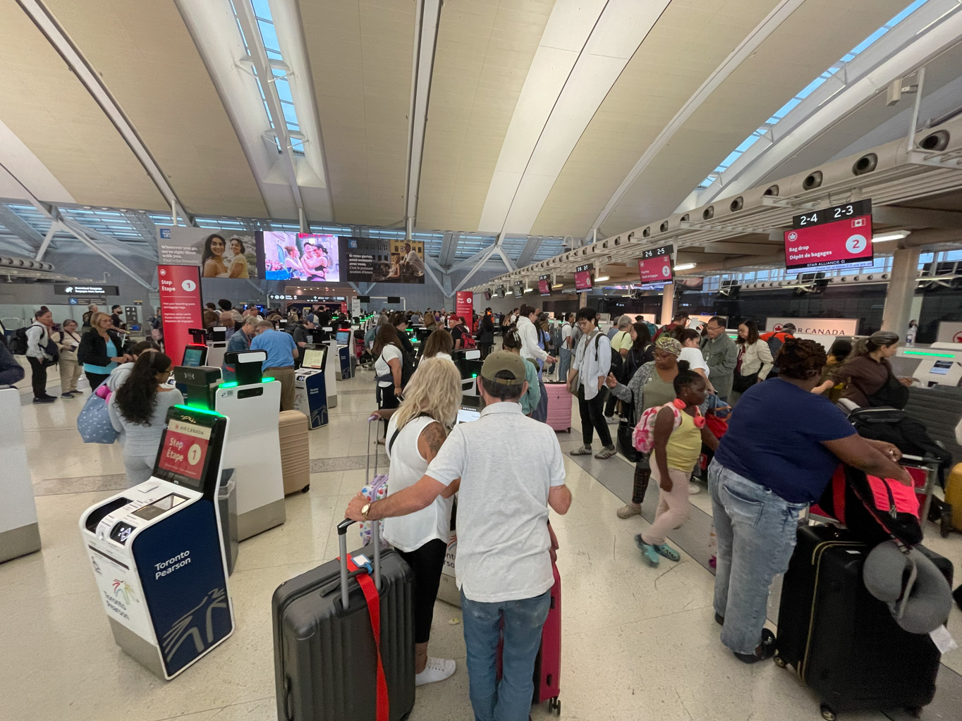 Karen and Kai picked us up at 5:30am and by 6:40am, we were dropped off at Toronto Pearson International Airport. We said goodbye and made our way into the terminal. Our Air Canada flight was not until 9:30am but I thought because of the strike, it would be busy and I wanted to give us enough time. Besides I have lounge access so we could spend our time there.