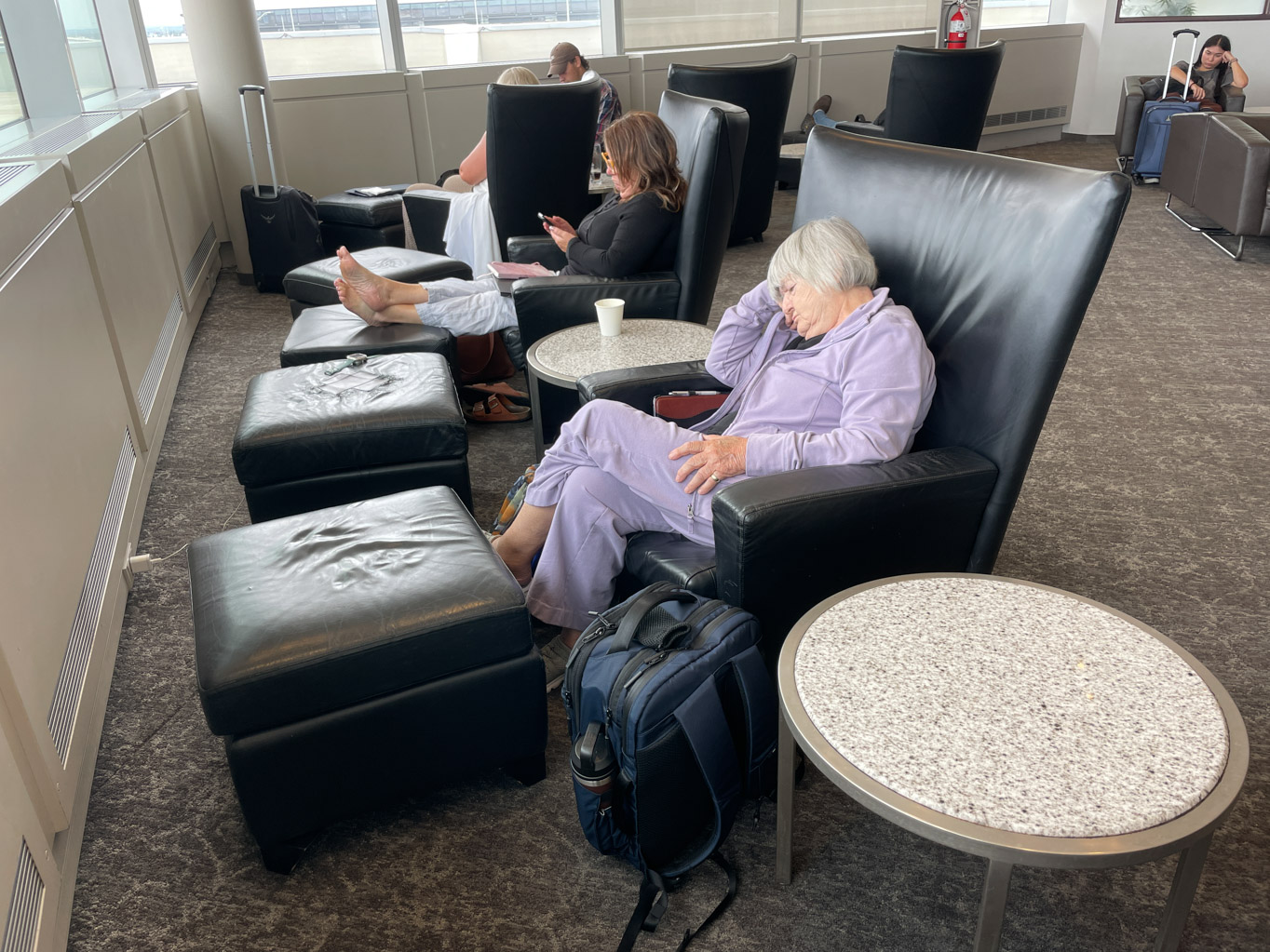 Finally at 8:00am, Nana and I headed to the check-in counter. It only took a few minutes for the agent to put on a priority tag on our bags and off they went. We walked over to security and using the American Express Priority Security Lane Access passes, we quickly were through. Air Canada’s Maple Leaf Lounge is literally steps from security. I was concerned that there would be a lot of people here but I was shocked. I would say the lounge was about 25% full. Since we were going to be here for quite a while, I managed to find us a nice quiet spot. How did we spend the next three hours or so … eating (breakfast and lunch), playing games on the iPad, napping and waiting.
