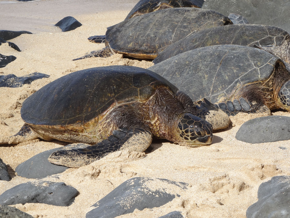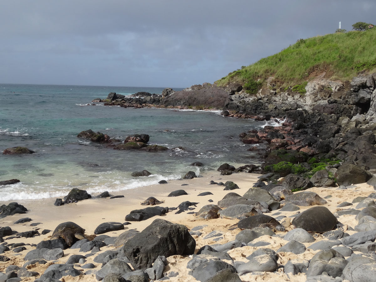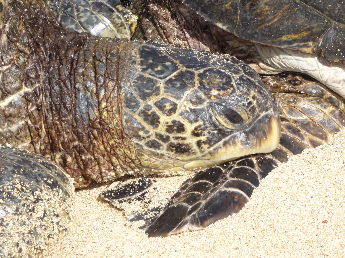 We had no real plans for this afternoon so we headed back to Ho’opika Beach Park to watch the surfers. While checking out the surfers, a vendor told us that there were turtles down on the beach. So we decided to go and see them. When we go there, there were eight turtles. As time went by, six more turtles came out of the water to enjoy the sunshine on the beach. I could have spent all afternoon sitting there watching them. It started to rain so we left and went into Paia to do some shopping.