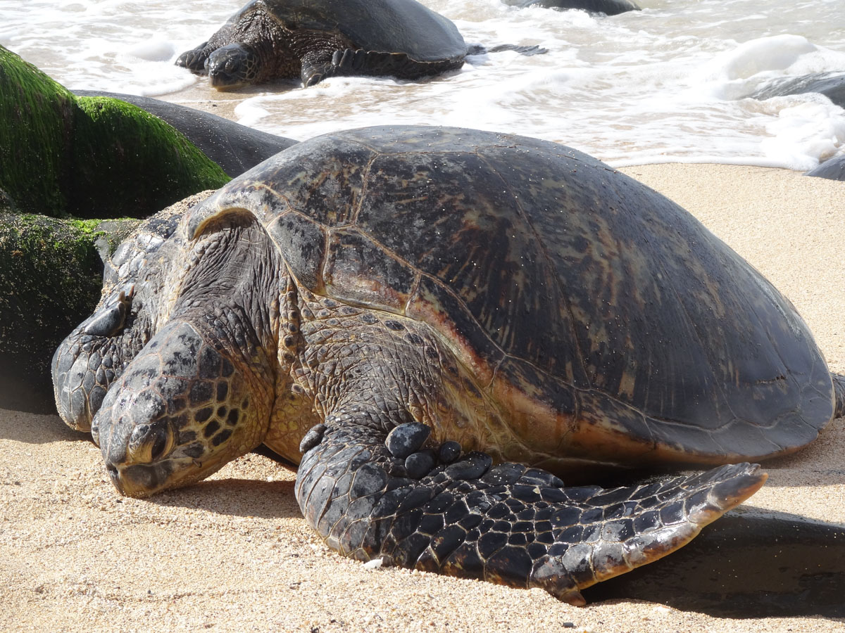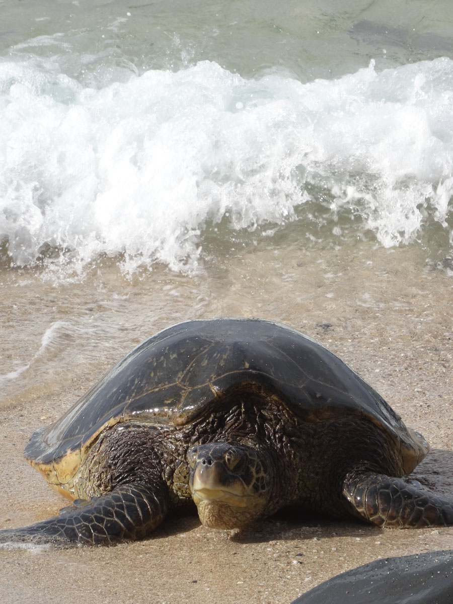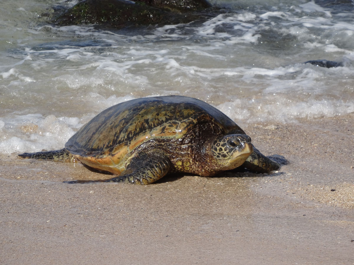 We had no real plans for this afternoon so we headed back to Ho’opika Beach Park to watch the surfers. While checking out the surfers, a vendor told us that there were turtles down on the beach. So we decided to go and see them. When we go there, there were eight turtles. As time went by, six more turtles came out of the water to enjoy the sunshine on the beach. I could have spent all afternoon sitting there watching them. It started to rain so we left and went into Paia to do some shopping.