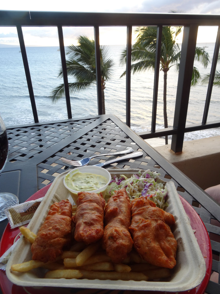 We wanted to enjoy what would probably be our last sunset at the condo tonight so we picked up dinner from Eskimo Candy and enjoyed it on the lanai. We ended our evening in Kahului shopping at the Costco and the Queen Ka’ahumanu Center.