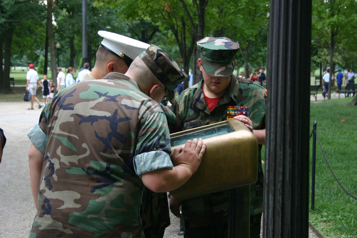 Our first stop is the Lincoln Memorial, Vietnam Veterans Memorial and Korean War Veterans Memorial. This stop allows us to see 3 memorials at one place. We started at the Lincoln Memorial and took alot of pictures. We actually ended up spending over an hour just at this memorial. From there, it was a quick walk over to the Vietnam Veterans Memorial. It is quite a site to see all of the names inscribed on the wall. There are books at the entrance to the memorial where you can look up a name and it will tell you where on the wall it is. We then walked over to the Korean War Veterans Memorial. Another moving memorial.