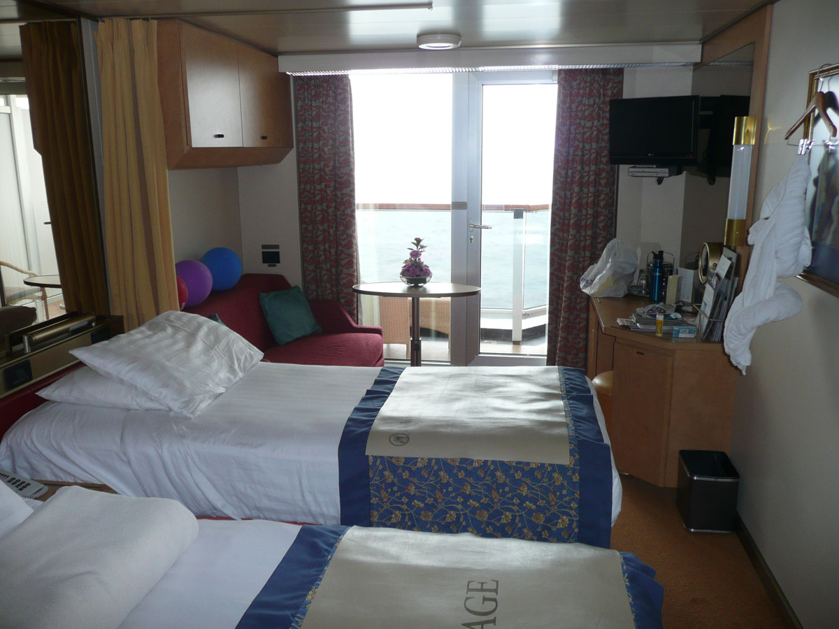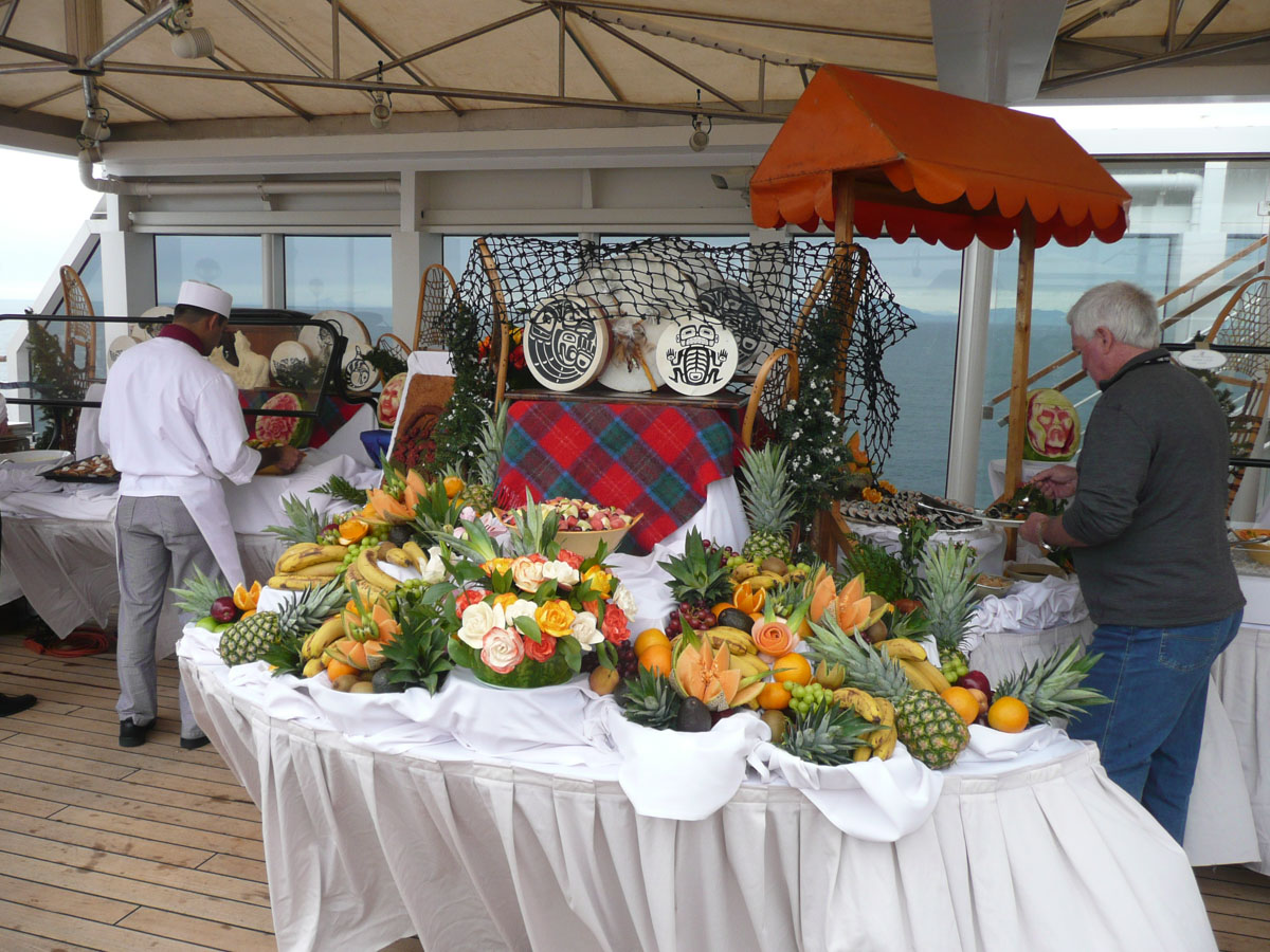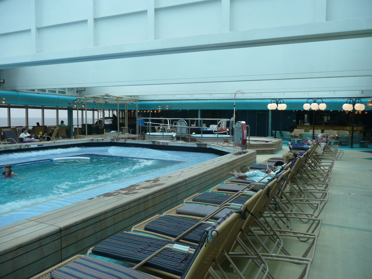 We went back to the room and grabbed our bathing suits and hit the hot tub. We were the only people at the Lido pool. It was a welcome relief to my tired and aching body. I went up to the Exploration cafe to do one last posting of the blog, while Nana & Karen checked out the entertainment in the Vista Lounge. Right after this, it’s back downstairs to pack up our bags. They are picking them up at 1am. I hate the packing