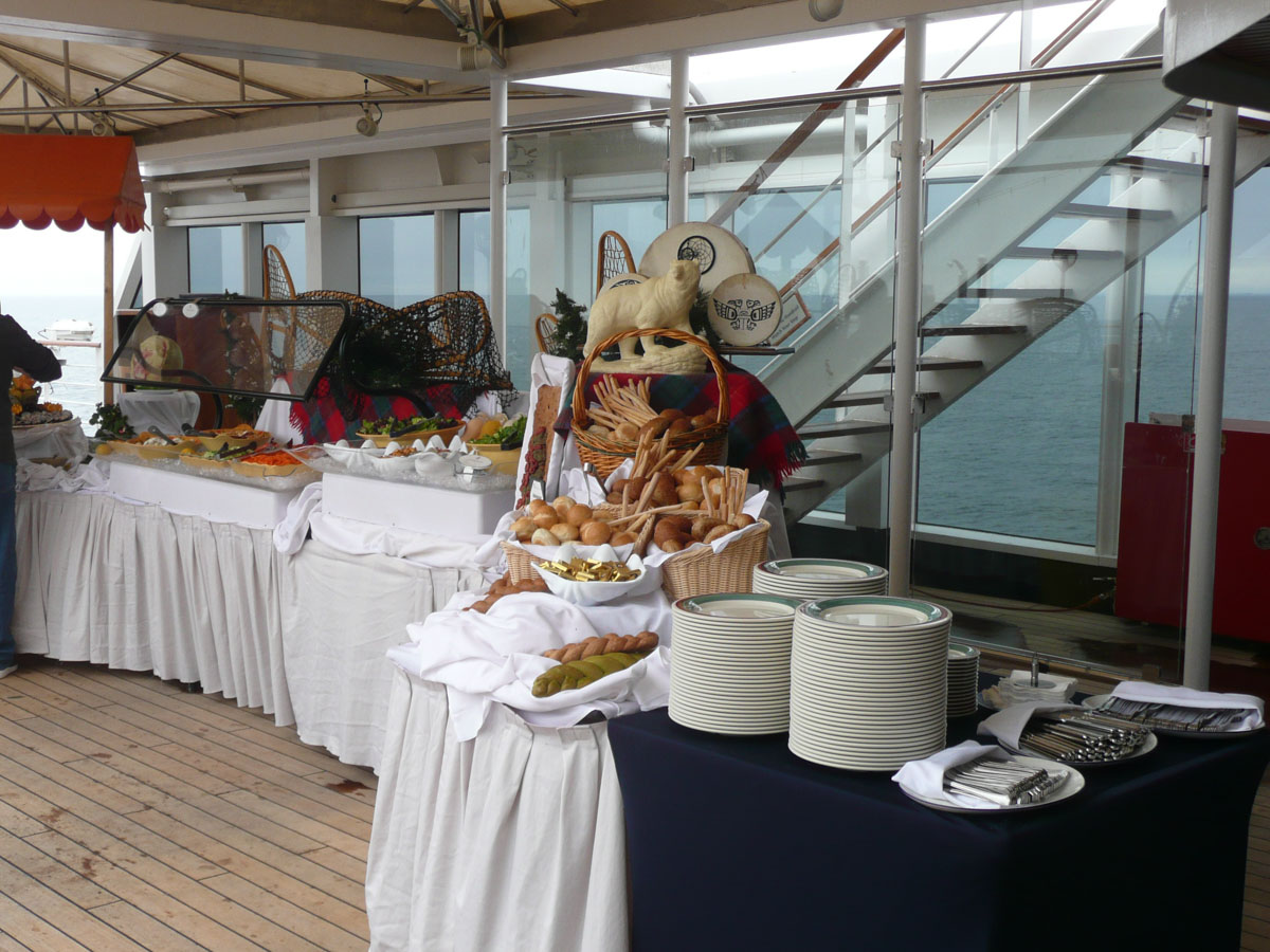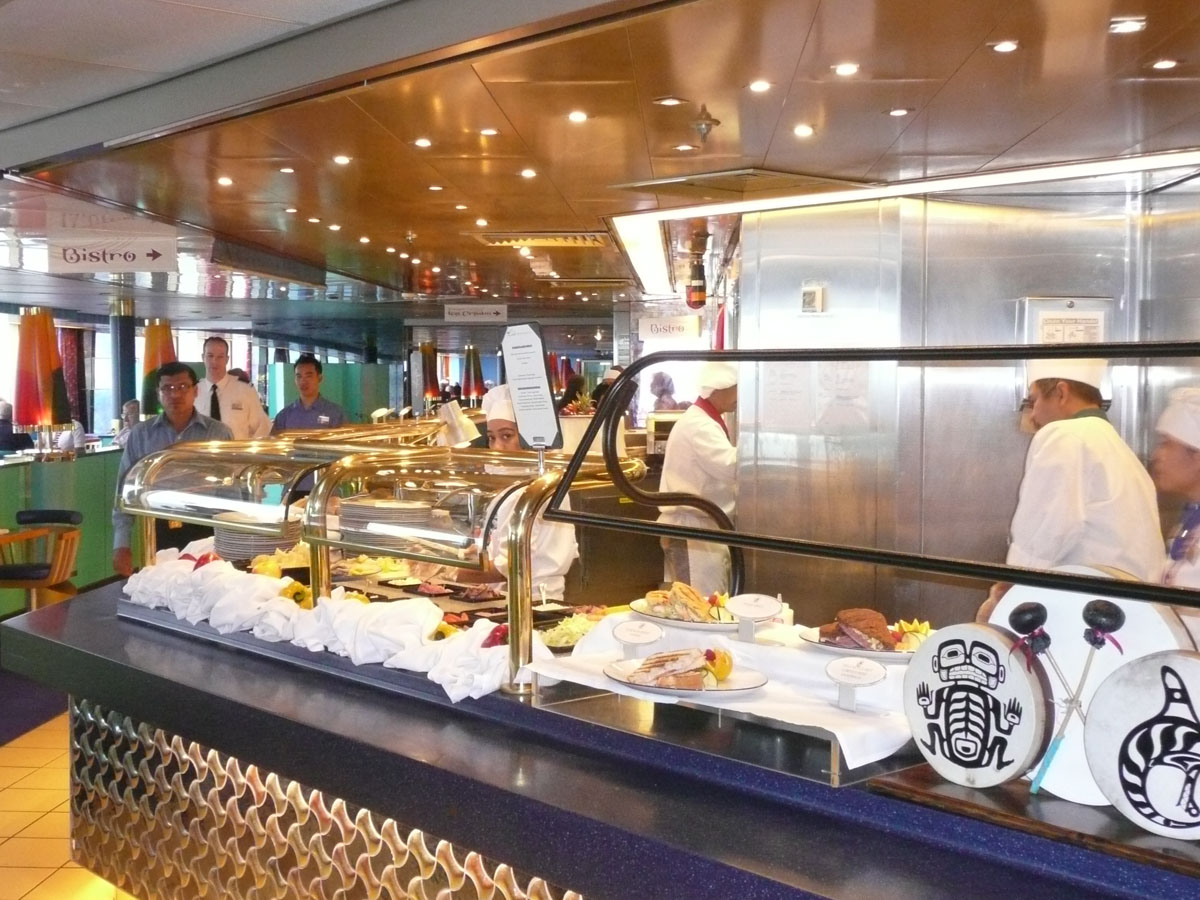 We are very sad today. It’s our last day on the ship. We decided to change things up and have breakfast in the Vista dining room since we hadn’t done that yet. After breakfast, Karen and Nana went to the Vista Lounge to listen to the talk about disembarkation while Papa and I hit the casino one last time. We both walked out with no money. Papa was tired so he went back to the room while Karen, Nana and I roamed the ship taking pictures. For lunch today, they were having a salmon bake which Karen and Nana enjoyed. I still hadn’t eaten at the Terrace Grill so I thought I better do that.