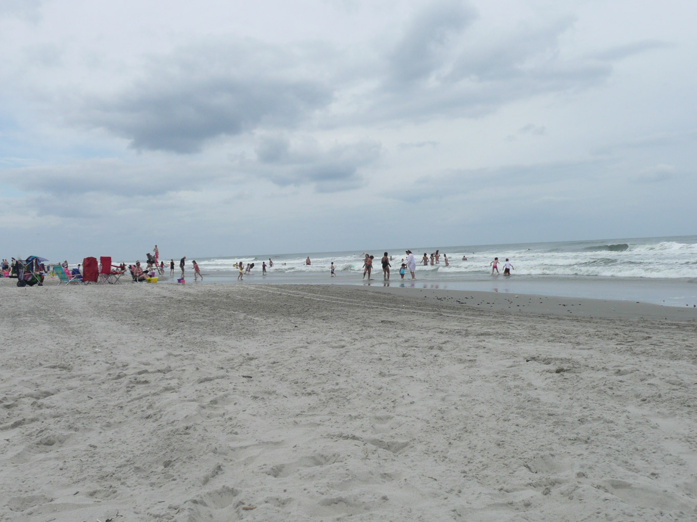 We went to the campground office and extended our stay by one more day. We then went back to B-49 and torn down the site. Since it rained last night, there was a bit of water inside the tent. I need to figure out why the fly is letting in the rain. Any suggestions? We took our stuff back to the cabin and decided since the sun was shining, we should go to the beach. We didn’t want to drive too far, so we went to Sea Isle beach which is only about 5 minutes from the campground. We crossed the dunes and then saw that there were alot of people on the beach for a Friday. The afternoon was spent reading, napping, burning ie tanning and eating.