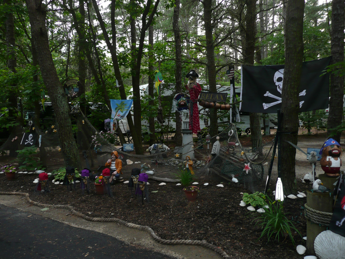 We wanted to have seafood again so we went to Mike’s Seafood & Raw Bar and sat on the back deck. We had “The Nantucket” which was a 1-1/4 pound lobster stuffed with bread scallops and shrimp. It was sure yummy. We got back to the campground and since we had quite a bit of firewood leftover, we finally got a great fire going tonight. The last day of vacation is always the best.
