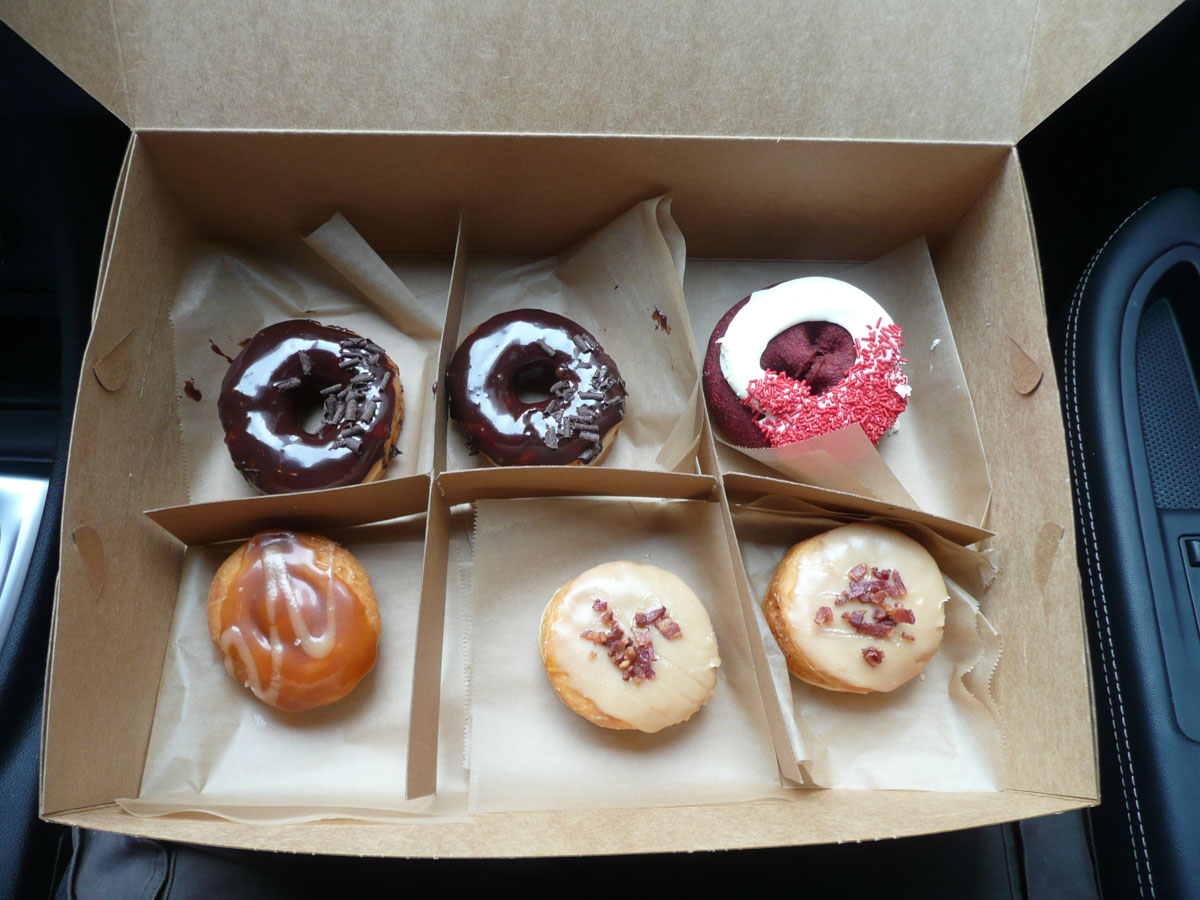 We arrived in Calgary around 9am, picked up our bags and our Dodge Avenger from Hertz ($347.67 CAD) and started our trip to Banff. We did make one stop in Calgary and that was at Jelly Modern Doughnuts. We saw an episode of You Gotta Eat Here! and just had to try the doughnuts. We picked up maple bacon, valhrona chocolate, red velvet and nenshi’s salted carmel doughtnuts. I would have to say that the maple bacon was my favorite.