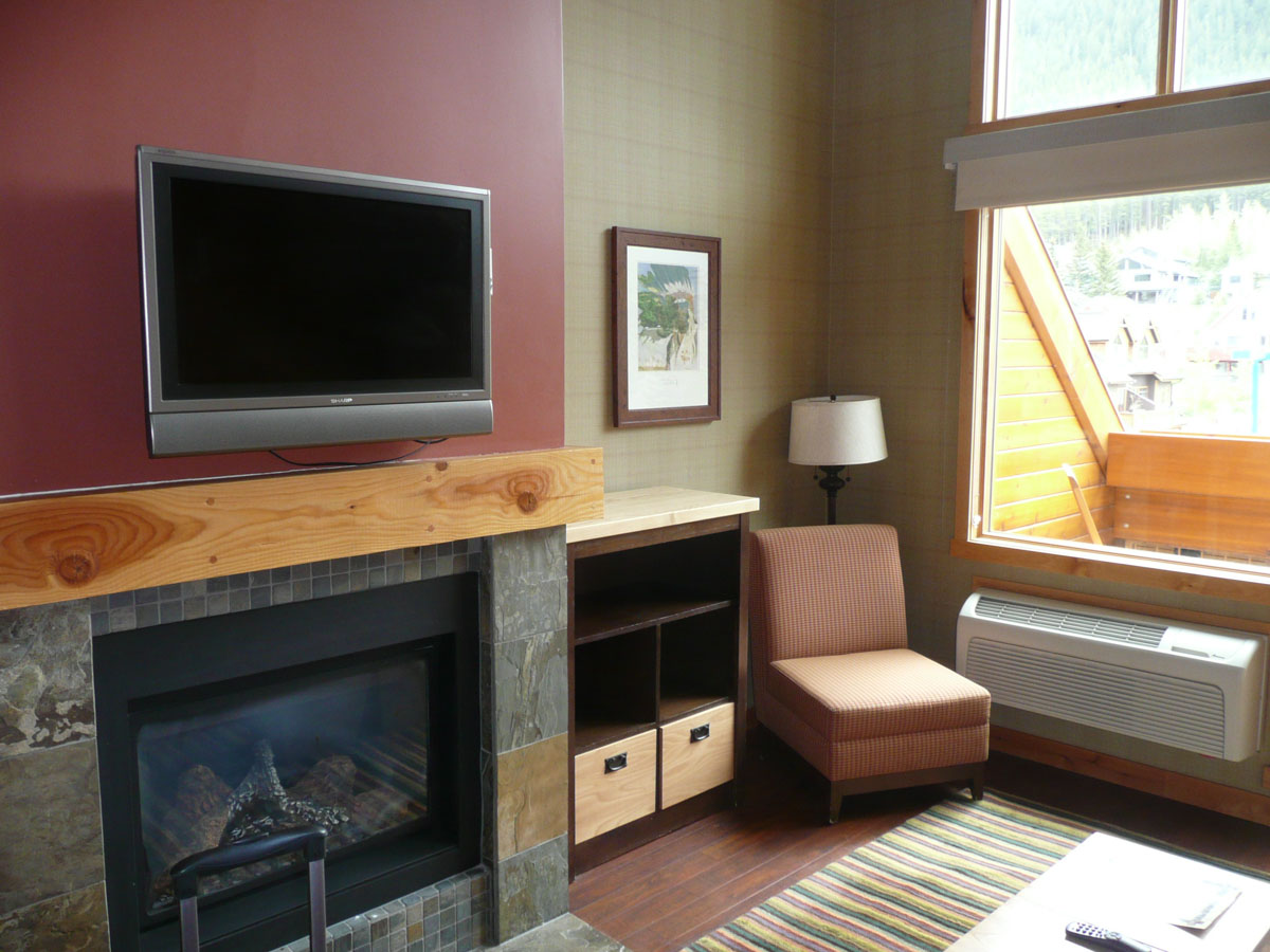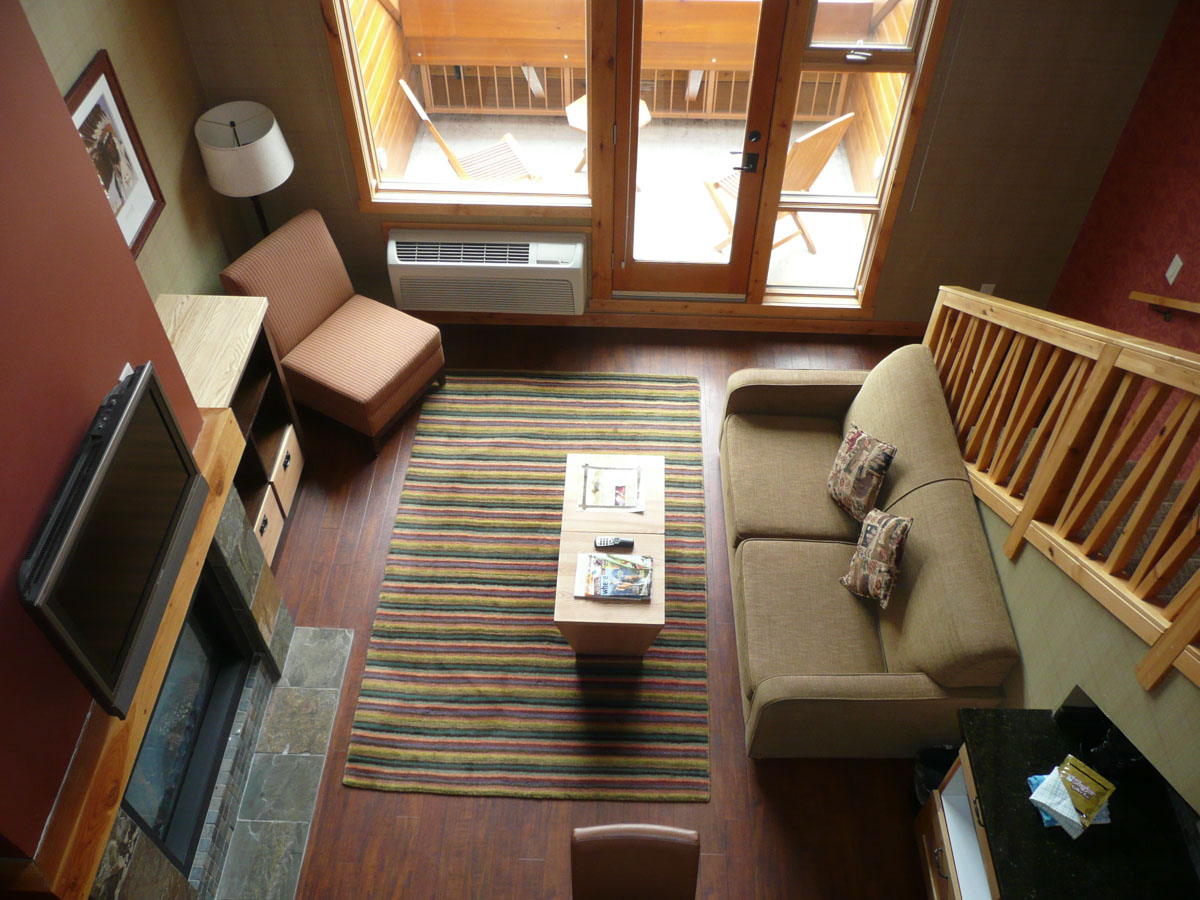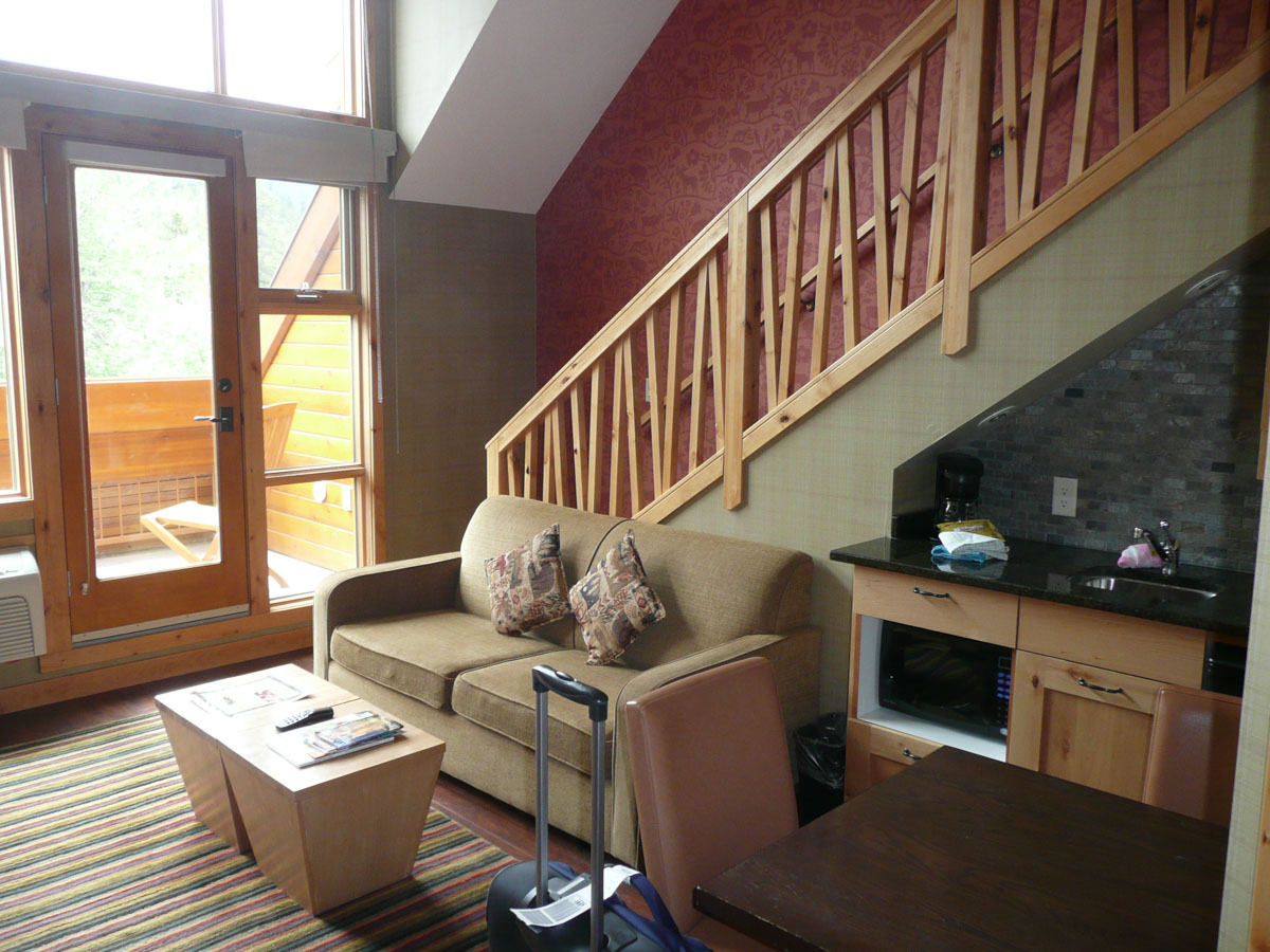 It took us about one and a half hours to get to Banff. We decided that we would head to the hotel first, the Banff Caribou Lodge & Spa ($119 CAD) to check in. I waited in the car while Karen went into the hotel. After a few minutes she came out with a big grin. Unfortunately the hotel was overbooked. They asked if we would mind going to their sister property called The Fox Hotel & Suites. Karen said that would be fine since we were going to be given loft suite worth $479 CAD/night. Yippee … We have never gotten an upgrade. We arrived at the hotel and were greeted with a beautiful suite.