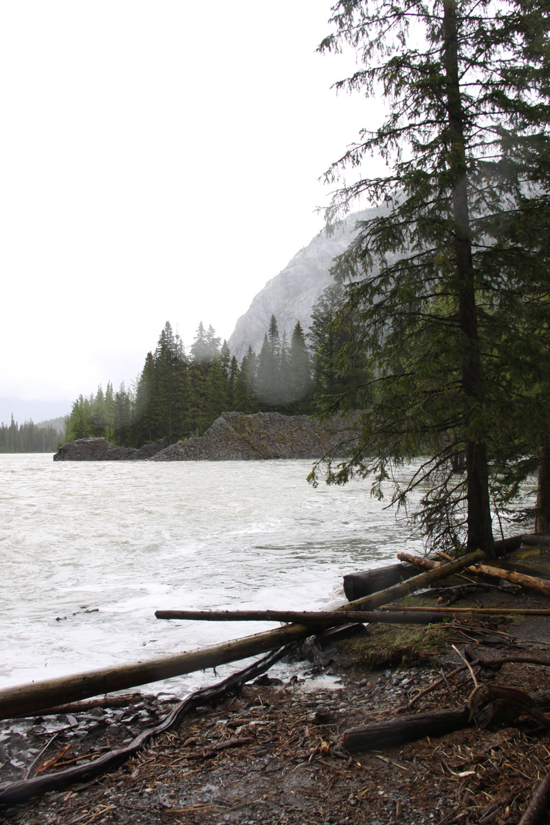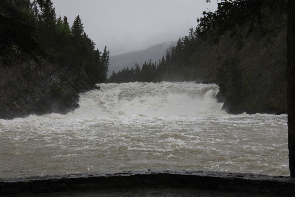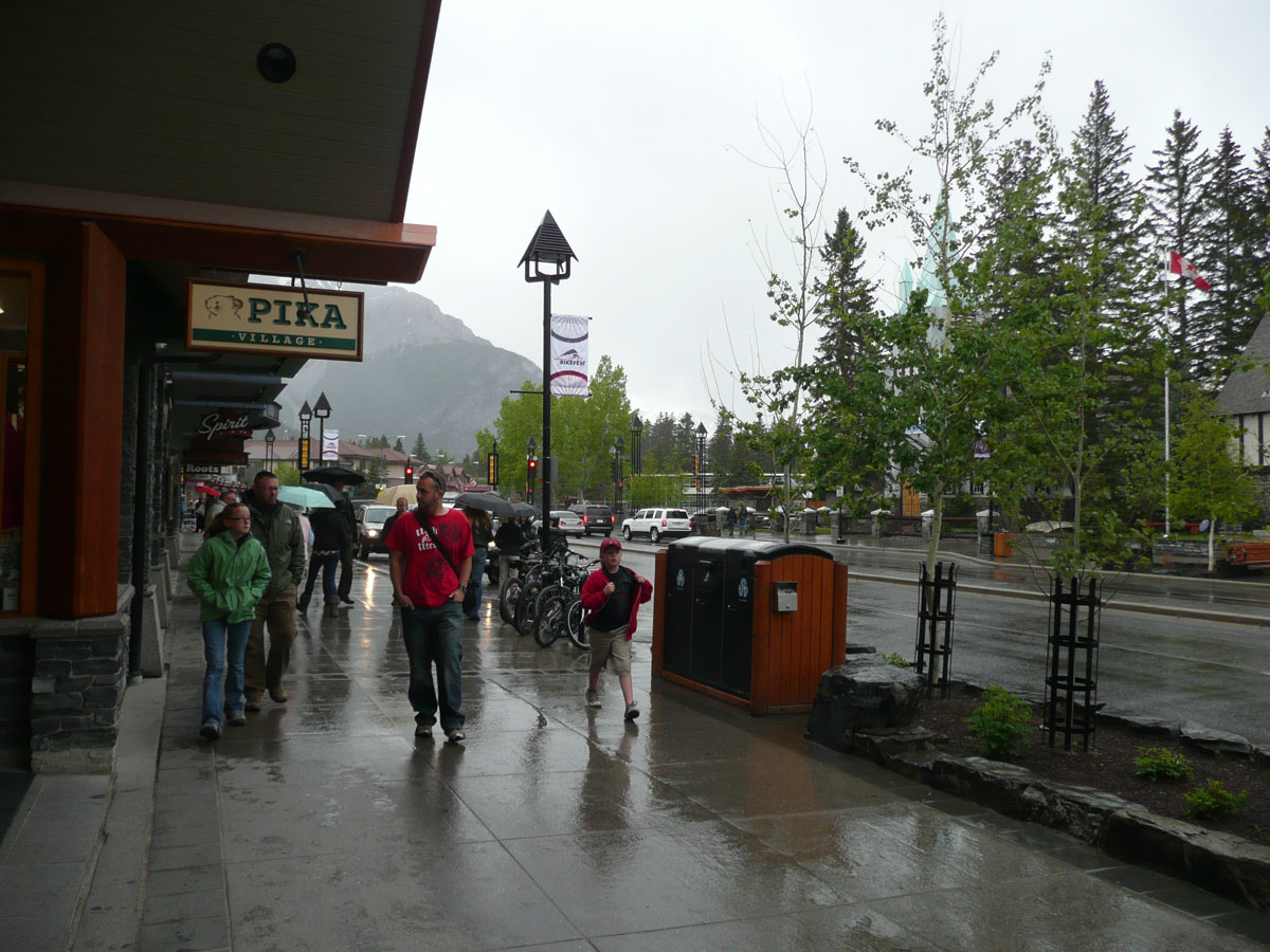 We dropped our bags and went out to find some lunch. The front desk clerk recommended Wild Flour Bakery. Once we got there we knew the place must have been good because of the line up. Karen went with the turkey wrap and I had the pulled pork. It was raining pretty good when we finished lunch, so we thought let’s do some shopping and maybe the rain will stop before we go sight seeing. I can not believe how much good shopping there is in Banff. After walking around most of downtown Banff, the rain had not let up. So we just decided to make nice with the rain and head out to go sightseeing.
