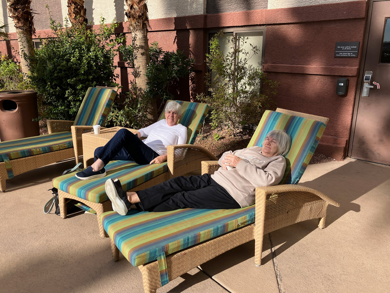 Joan and Nana working on their tans
