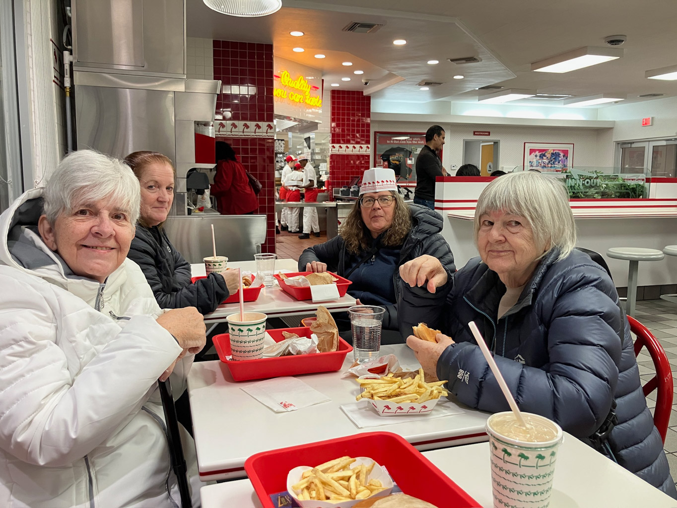 Back at the hotel, we were even able to return to our same rooms. Now we needed a plan for the evening. We considered Maggiano’s Little Italy or Olive Garden, but there were no reasonable reservation times. We thought about finding a buffet, but apparently buffets are going the way of the dodo in Las Vegas. In the end, we headed to In-N-Out, where we enjoyed their famous burgers, fries, and milkshakes.